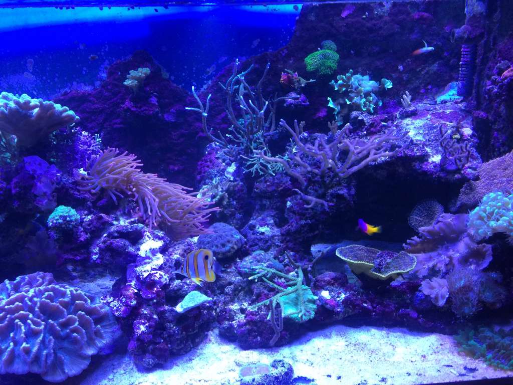 Har været sat tilbage pga. af en prope der var i stykker (salinitet) kombineret med en refraktometer der også var i stykker, men nu går det fremad og der er kommet fine vækst spidser på Acropra og andre koraler.