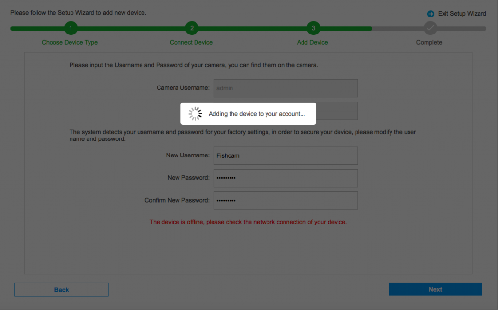 Den stopper kommer ikke videre end hertil. Som I kan se skriver den at der ikke er forbindelse til nettet, men jeg har jo lige fundet kameraet gennem husets router. Så forbindelse er der jo. Jeg har sat kameraet til med kabel, da jeg ikke kunne få forbindelse med wifi.