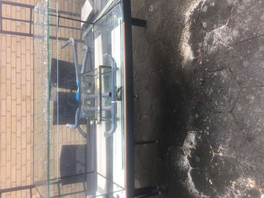 Jeg skar selv ud til overløbsboksen med vinkelsliberen. Når man først har gjort det en gang er der faktisk ingen ben i det (ja ja jeg er med på man ikke vinder nogen design priser, men det er jo også gemt bag akvariet). Borede 3 huller i det, 2 retur og et sikkerhedoverløb. Godt med klar silikone til selve kassen og da kassen skulle limes på akvariet blev det med sort silikone. Fik monteret en tværstiver og nu er jeg igang med at male bag glasset sort og så skal jeg se om al mit silikone arbejde er tæt :sneaky2: