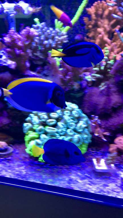 Jeg har problemer med at holde anthias, da de kræver så meget foder at jeg får for høj nitrat, så jeg nøjes med gul kirurg, et par gylter, et kardinalpar og et par klovne.