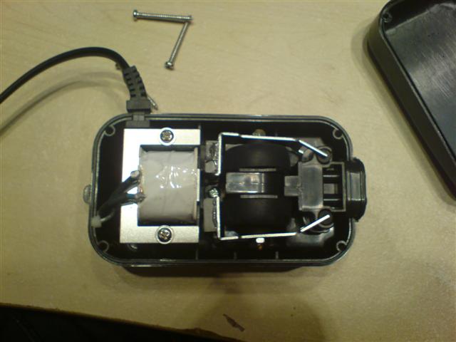 Magneterne på armene trækkes ind mod midten af jernkernen af magnetfeltet og skubbes væk fra yderpunkterne (og omvendt, når fasen vendes) men de sidder ret meget forskudt for midten i udgangsstillingen og dermed er der forhodsvist langt ind til midten. Det måtte der lige laves om på; jeg bøjede lige armene med en fladtang - ikke ret meget, bare så magneterne kom 5mm længere ind mod midten (stedet er markeret med røde cirkler på billedet).
