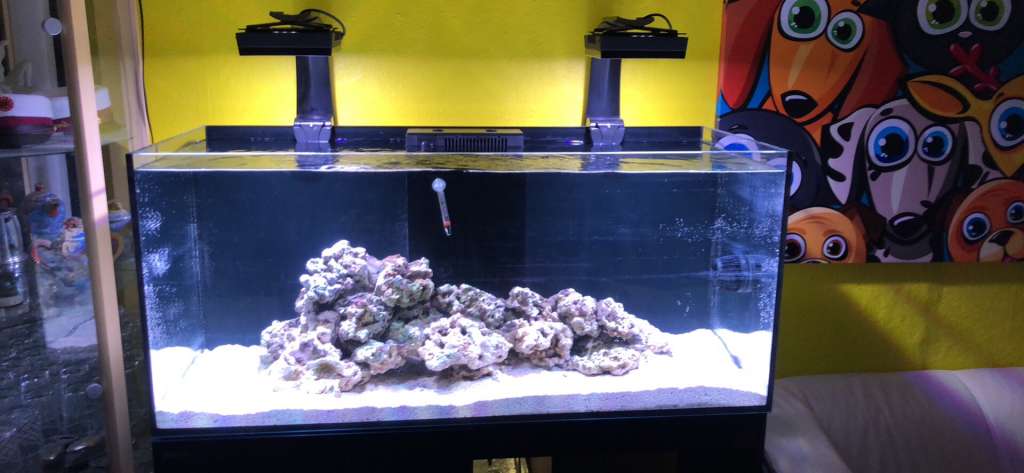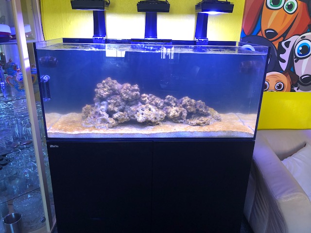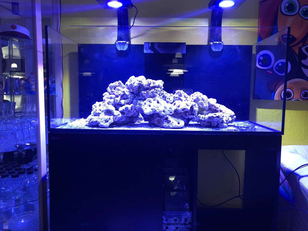 Akvariet er et Red Sea Reefer 350. med total vandmængde er på ialt 350. i både display og sump i alt