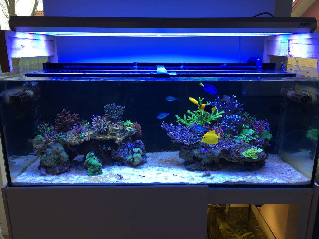 acropora blev lidt brun lige efter, men den er blevet fin gul igen i toppen, men bunden mangler at komme sig. Så har jeg tilføjet en pumpe bag min stensætning for at få noget mere bevægelse over sandet og under stenene.