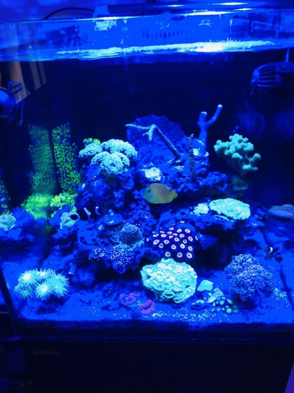 I løbet af det seneste år har jeg døjet med svinge næring værdier der har gjort at min acropora har mister deres farver dog på retur nu, hvor baljen har fået den fortjente opmærksomhed. Blev også lidt for glad for lege med lyset så nogle koraller røg i svinget. Men den seneste måned er farverne på retur. Vækst pt gået i stå på sps’erne de seneste måneder, men håber det vender..