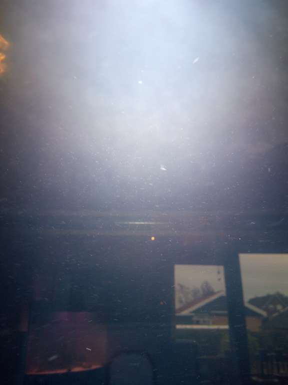 Min tanke er om det kan være selve glasset eller belægning på glasset eller noget lign. der skaber effekten. Jeg kender ikke det pågældende akvarium fabrikat, men jeg ved med sikkerhed, at på nogle af de akvarier hvor 3 sider er i et stykke, bliver glasset meget nemt ridset (næsten som acryl). Tænker buet glas måske generelt er mindre hårdt i overfladen.