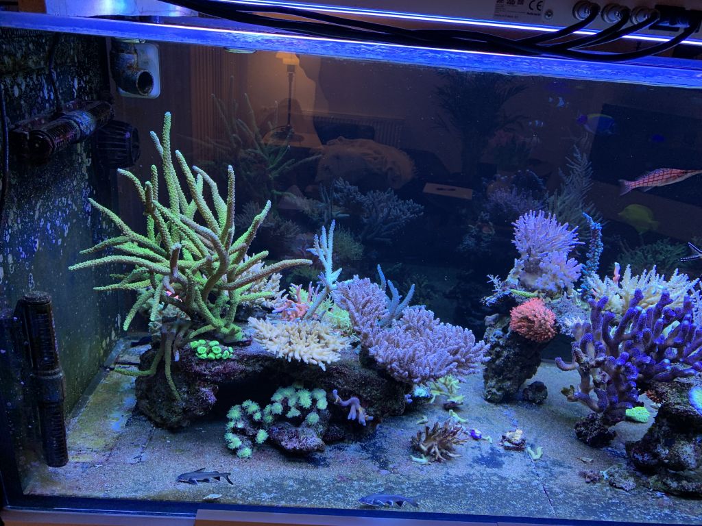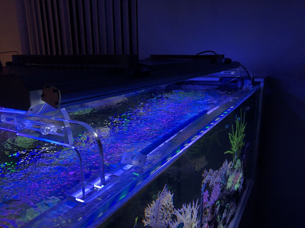 Lige nu køre akklimatiseringsprogrammet hvor man går fra T5 til led. Ingen anelse om hvordan det fungerer, men det ser ud til at virke da der er fuld PE på alle koraller.