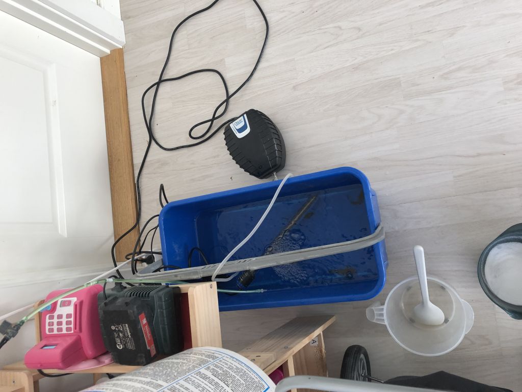 Og så var Gambi aka Martin så sød at komme forbi, fordi det driller lidt og så er et par ekstra øjne godt nok rart. Så nu er planen at lave ugentlige vandskifte, genoptage AF produkter og så sidder på hænderne og ikke lige pludselig hælde en masse jod og strontium i baljen fordi man liiiiigggeee syntes det mangler.