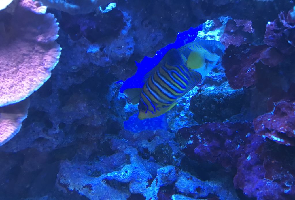 Imperator er så småt begyndt at vise tegn på farveskift, rygfinnen bliver mere og mere hvid og de “neon” blå cirkler er aftaget. Den brummer ind i mellem lystigt når den ikke er helt tilfreds, eller vil have mere mad. FED FISK :hehe: Glæder mig til at se den i voksen dragt, gad vide hvor lang tid det tager? Nogle erfaringer ???