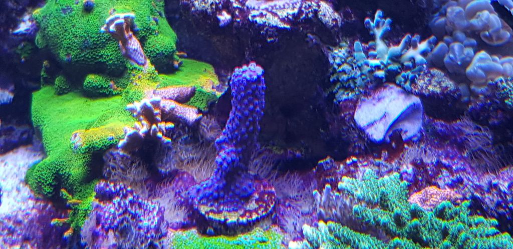Aiptasia (glasroser) er, som jeg skriver, et perfekt sted for Cyano. Når det danner skove, så holder det på detritus og hæmmer flowet. Oplagt sted for Cyano. Læg mærke til området omkring A hoeksemai.<br />Min filfisk er ellers flittig, men må have en hjælpende hånd ind i mellem. Så fjerner jeg aiptasia manuelt.