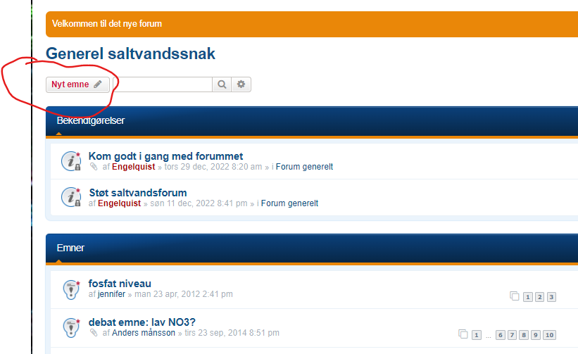 Gå til det det forum du vil oprette dit emne/opslag i og klik på "Nyt emne"