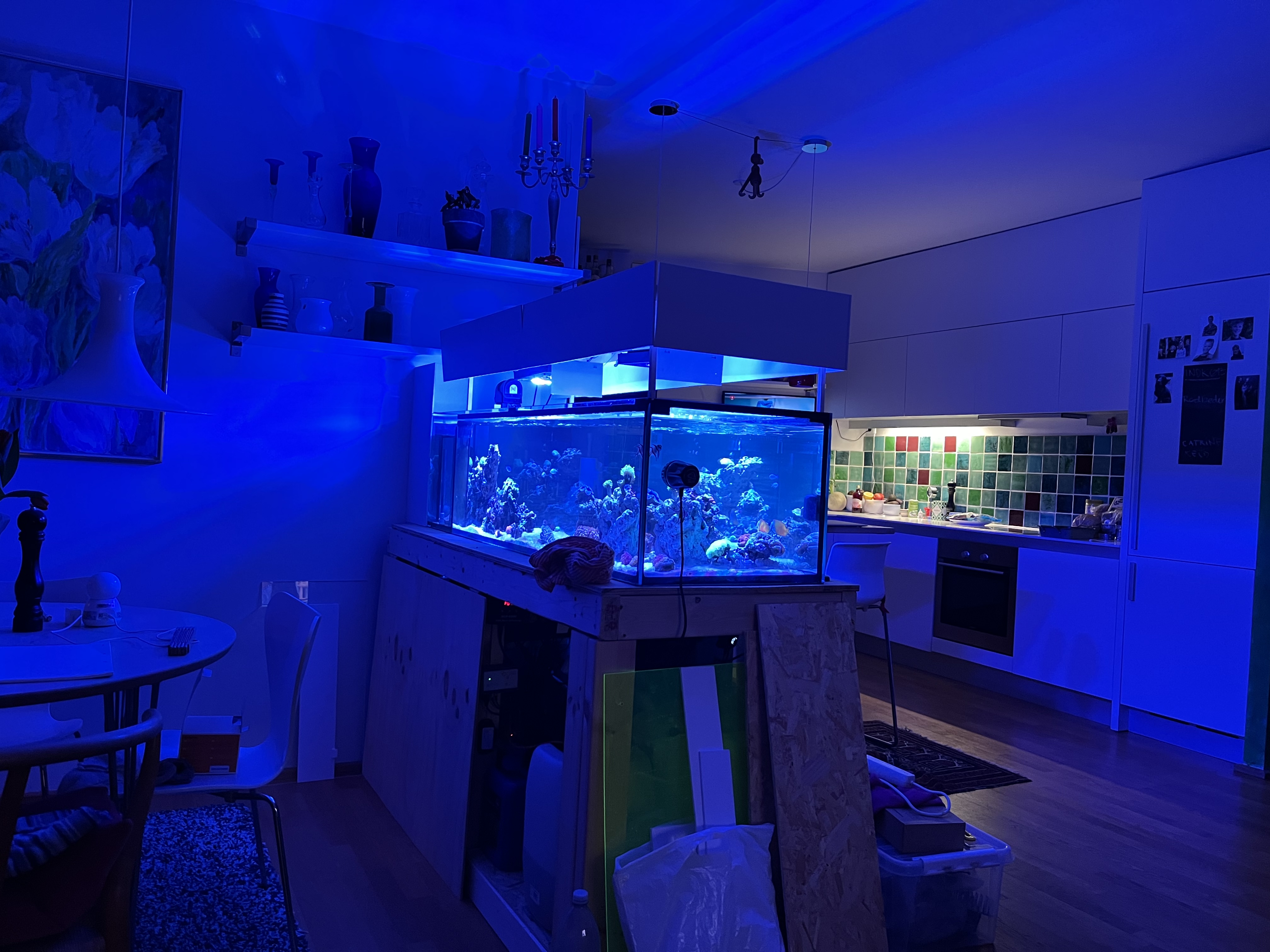 Mine gl ecotech rx15 og 30 gen 4 lamper. De giver rigeligt lys til de lps jeg vil have i dette akvarie. De kører pt på 60 %. Jeg har en gl. kessil lampe liggende som jeg overvejer at sætte op, og lave en "spot" effekt med.... Dont know yet..