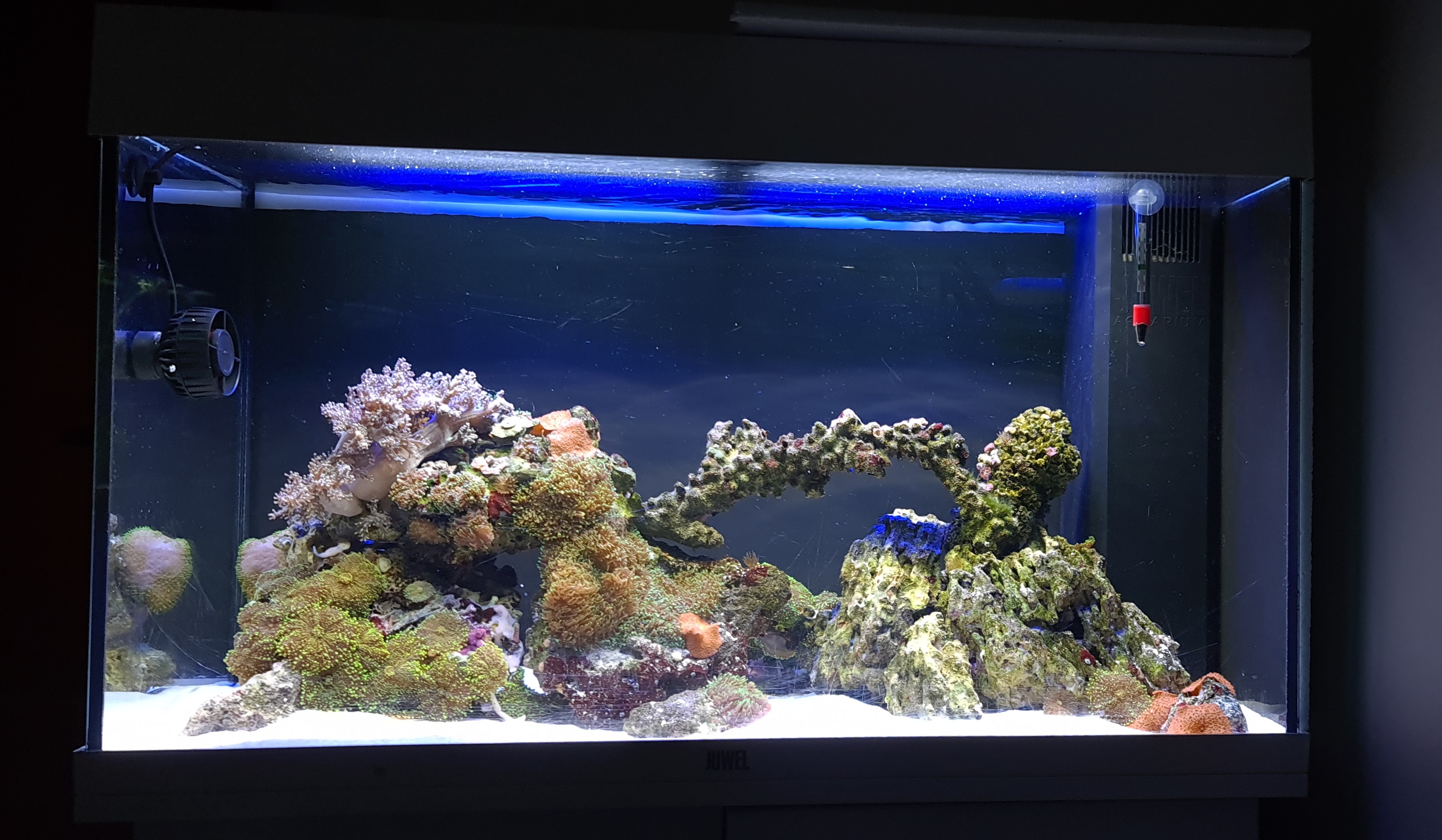 Det er kun fordi en i vores lokale akvarie klub, har et 450L saltvandsakvarie uden skimmer, refugium, avanceret lys, automatisk dosering osv. at jeg tænkte, at det kan jeg jo også gøre bare i mindre skala 😃