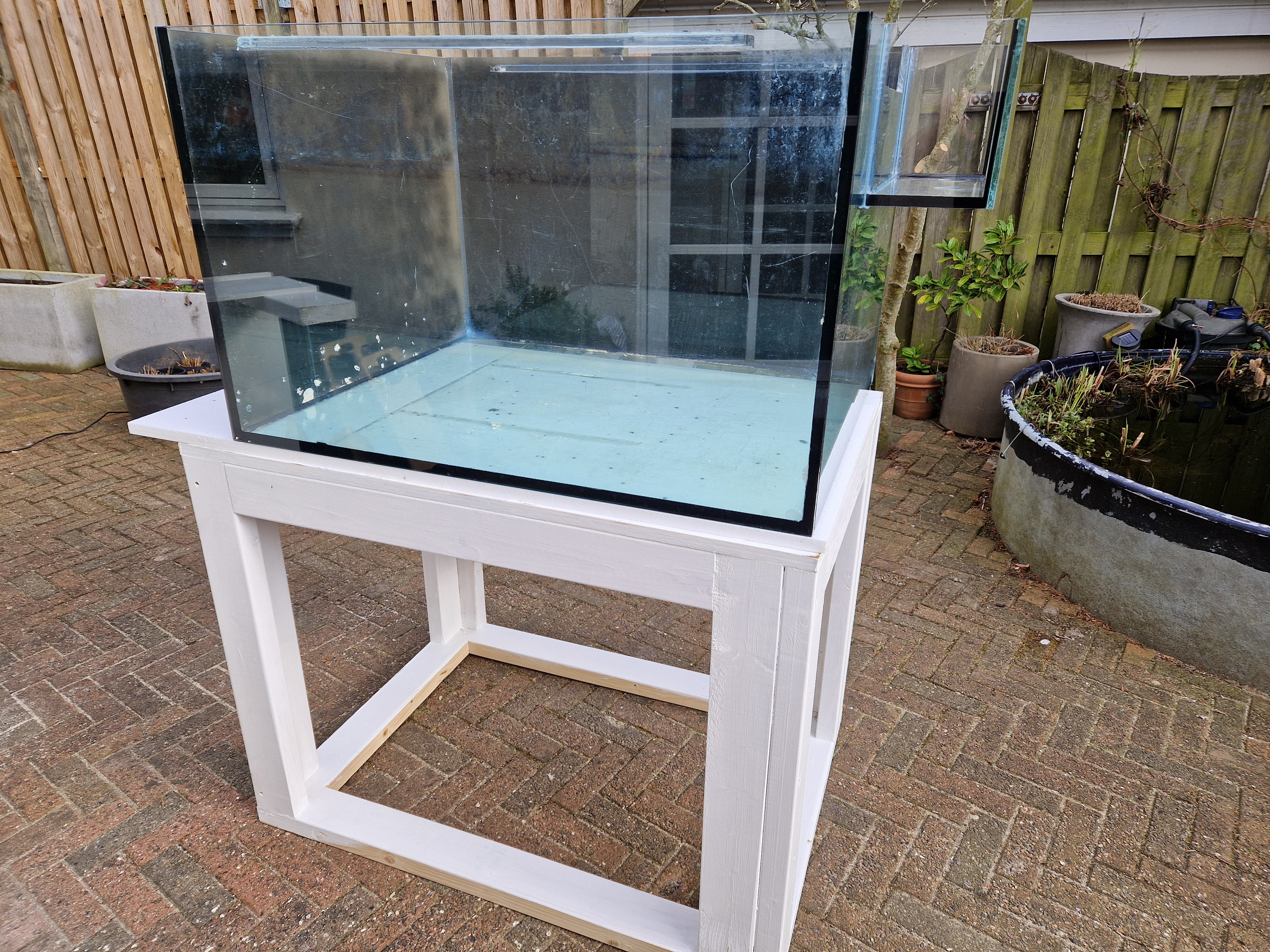 Den gamle er 95 x 75 x 60 og med de mål kunne jeg ikke bygge skab/skjuler foran hvis lågerne skal flugte med mit akvarie.