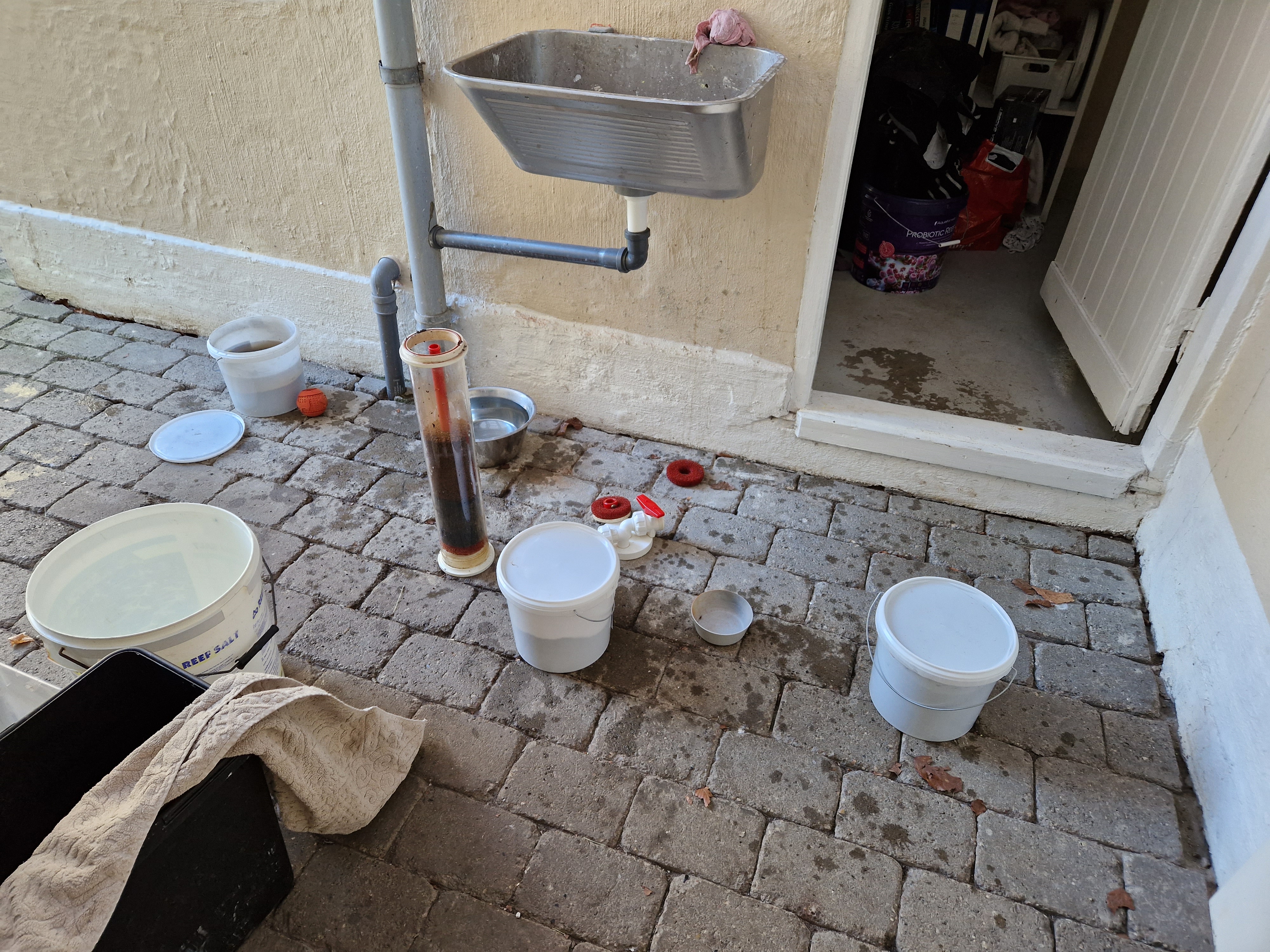 Pumpehuset var blevet utæt og kh var havnet på gulvet under akvariet.