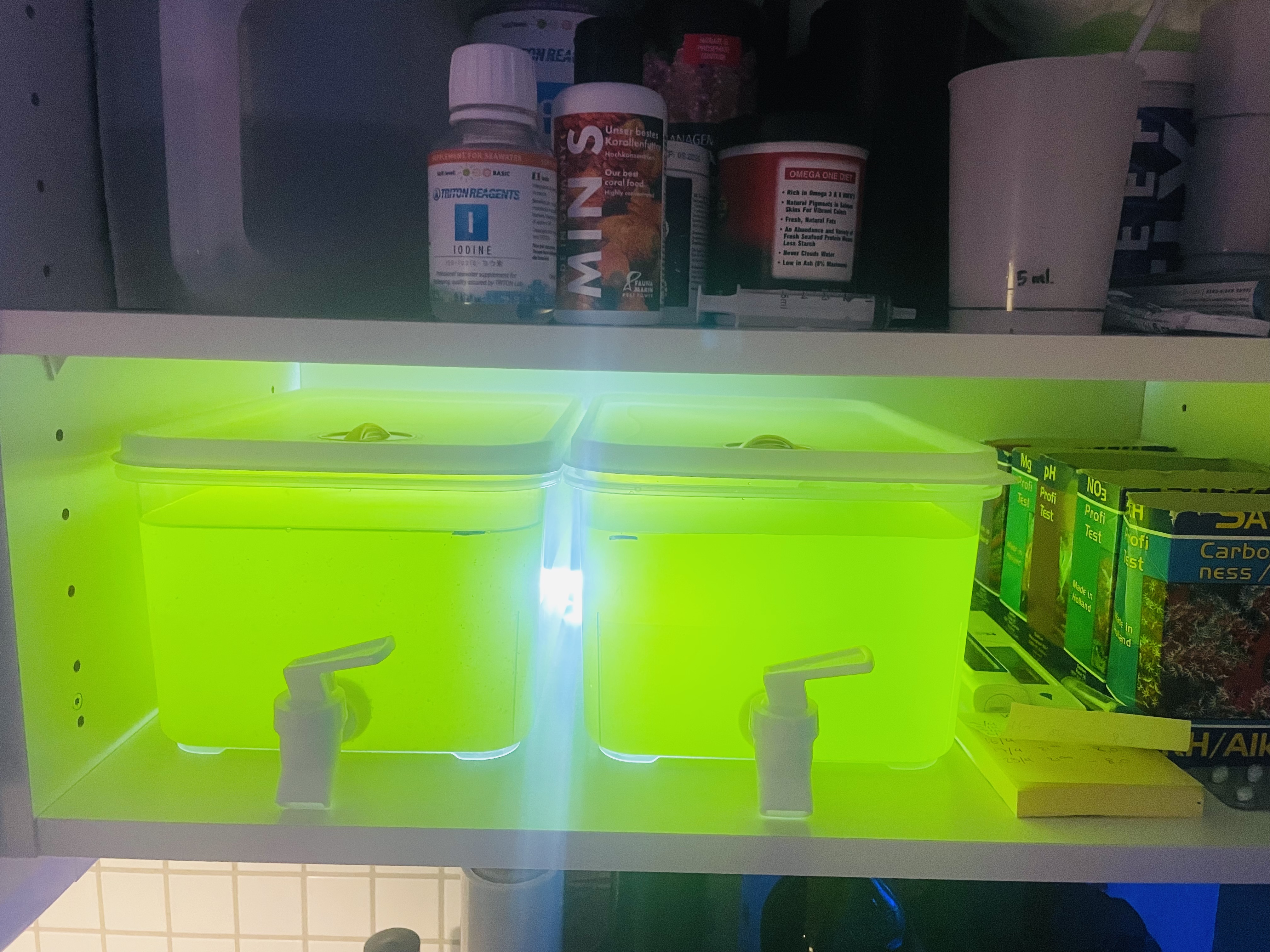 Saltvandet jeg topper op med er blandet til 35ppt for at matche akvariet.