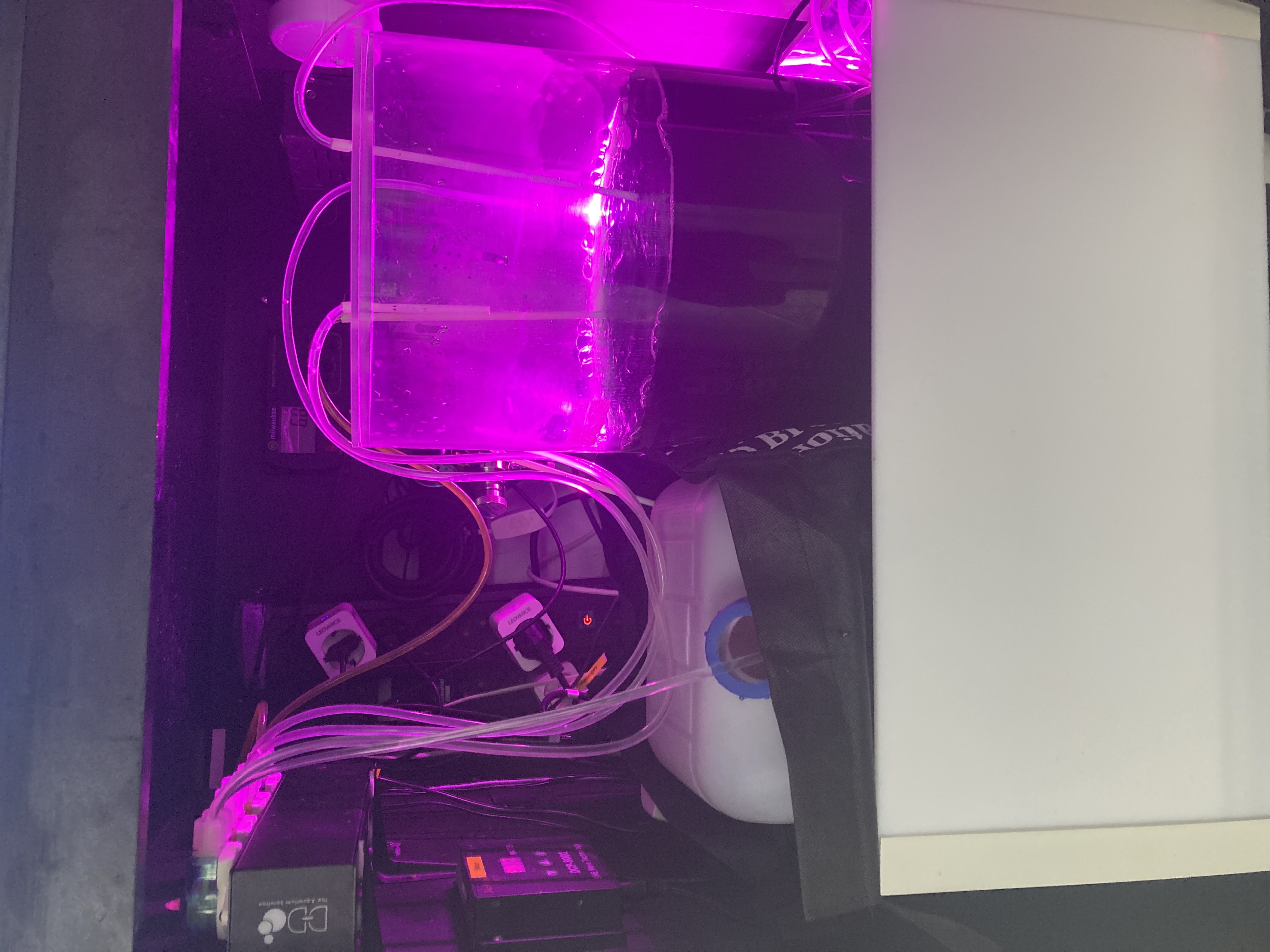 Siden december 2021 har kørt med en kontinuerlig kultur hvor der løbende tilsættes saltvand og gødning (jeg bruger F2) og doseres til akvariet. Det giver en del mindre vedligehold.