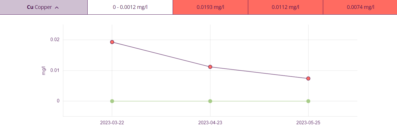 Det skyldes at jeg er ved at få kobber og aluminium ned under den kritiske grænse og det går støt og roligt den rigtige vej, hvilket kan ses på disse grafter over de sidste tre ICP tests: