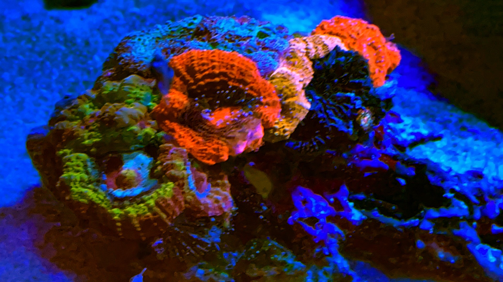 Her kører det stille og roligt, sidste tilføjelse er en fin lobophyllia frag, hentet hos Troels 👍🏼