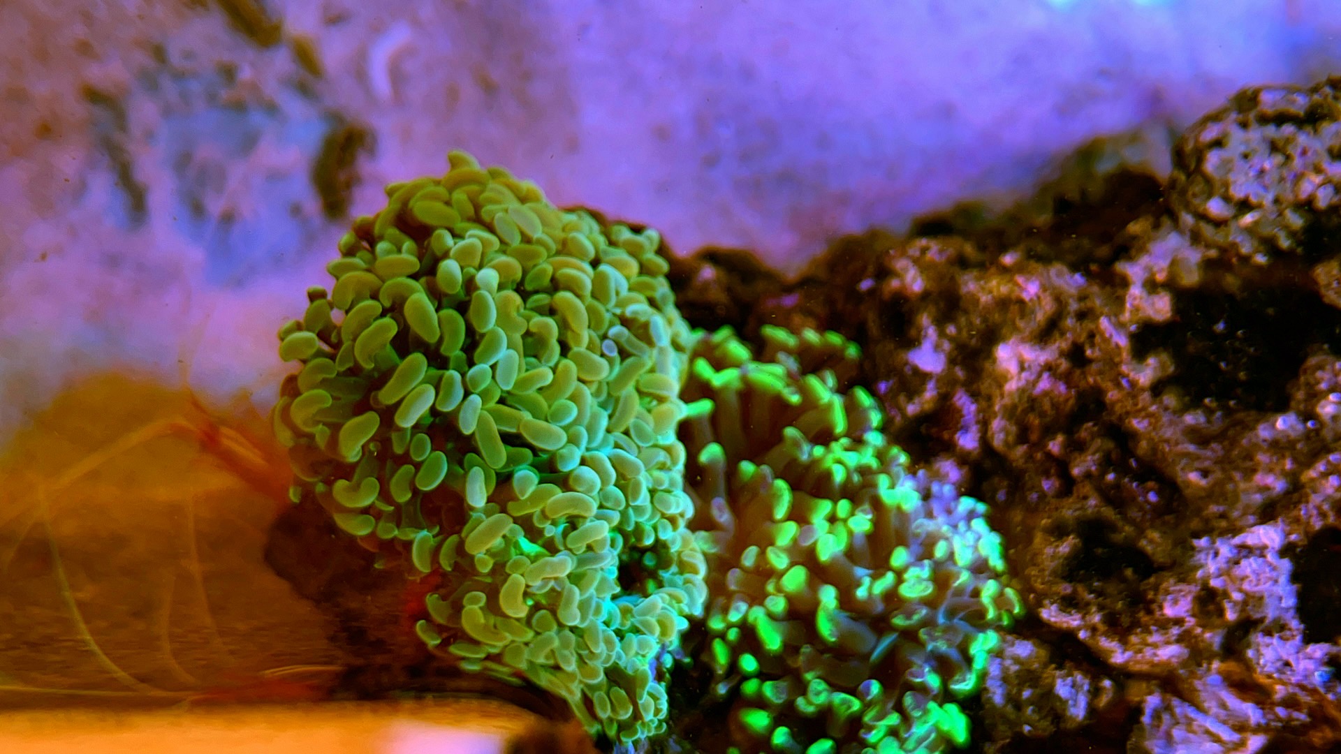 For ca 14 dage siden købte jeg et par wurdmanii rejer (pris 250kr pr stk 🤯🤯🤯😳) og satte dem ned i den ene stensætning = den modsatte af hvor de 2 dannebrogsrejer hænger ud. Det ser liiiiidt ud til at de har taget nogle af aiptasia roserne, men jeg kan godt se de IKKE er på akkord, sløve skidderrikker!
