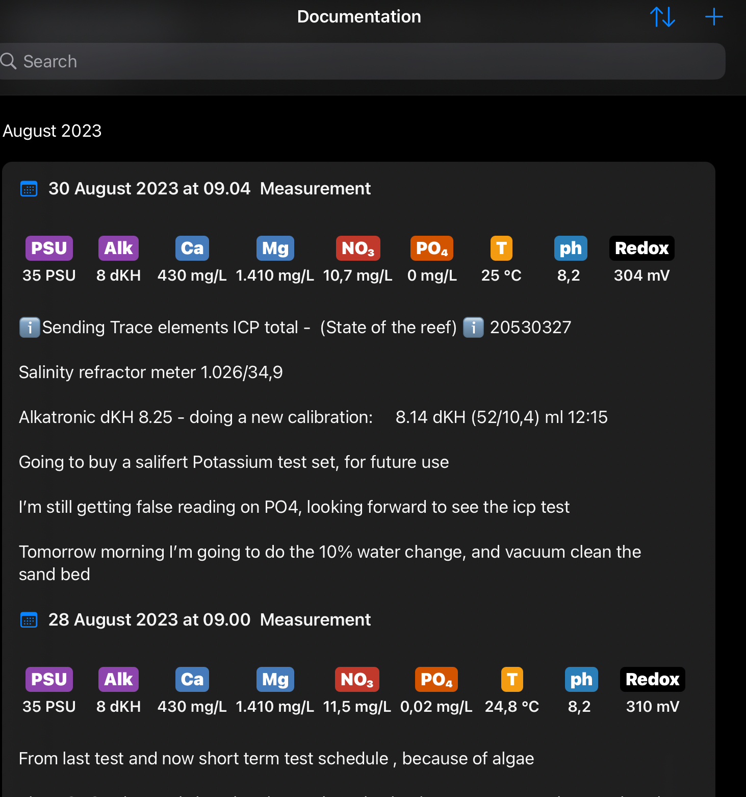 PT udskifte jeg kun 10% vand, en gang om måneden og altid lige efter ICP testen, så den ikke påvirker min ICP test, da jeg dosere 5ml Sr -strontium dagligt og F - Flour da jeg altid mangler det. Desværre har kalkvand doseringen, den bivirkning den reducer Bla. F -Flour