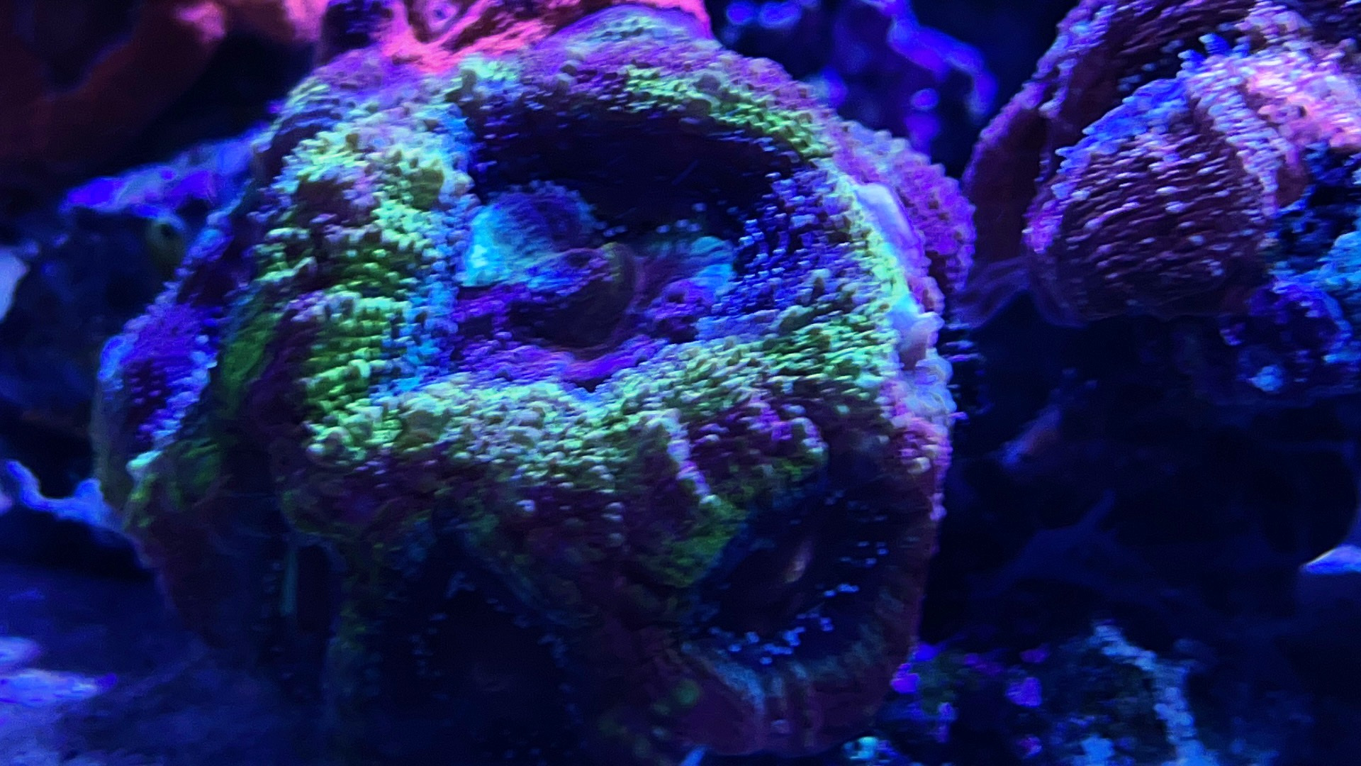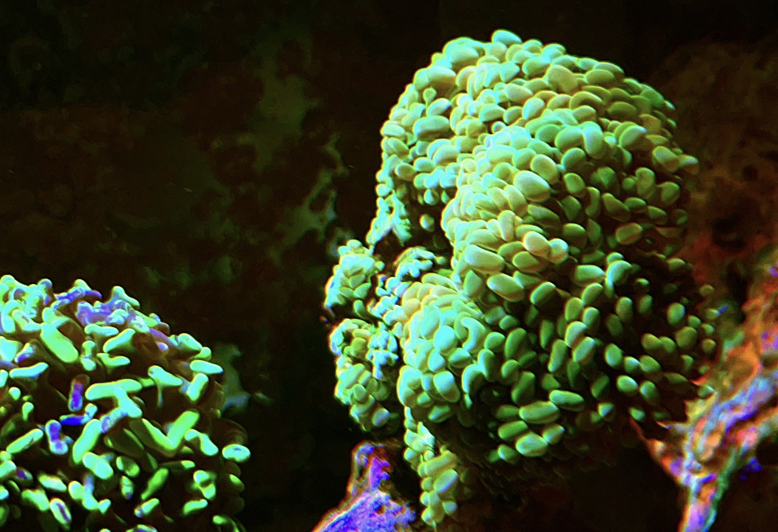 En sjælden gang i mellem fodre jeg lobo, ell traco -phyllia (aner stadig ikke hvad det er) og alle homophyllia med “coral pearls”… de minder om fiske pellets, lidt blødere og fisk og rejer er VILDE med dem 🙄