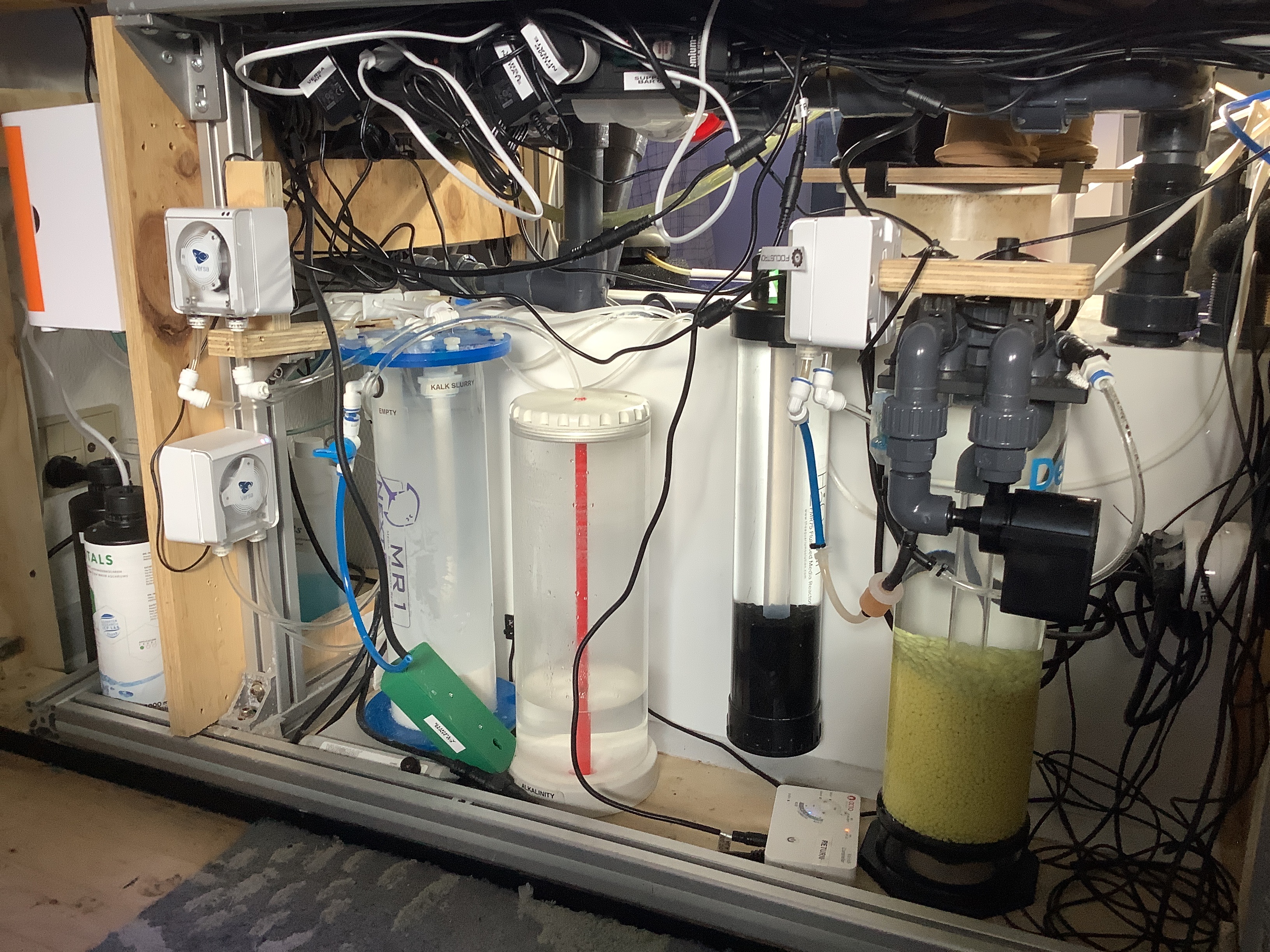 KH er endelig blevet helt stabil igen, og variere ca 0,15 KH dagligt. Jeg dosere pt, både kalkvand om natten, samt Balling light KH og har reduceret min calcium reaktor til 47ml/min. Den er nu slukket om natten, for at holde min PH oppe og starter kun op hvis min KH synker for meget. Styres af min APEX