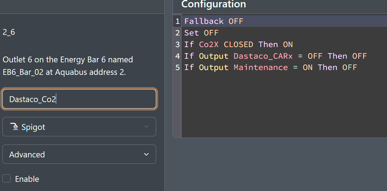 Vi arbejdede hen i mod, at bruge stikket til dosseringspumpen som alternativ. Så kunne man styre Co2 (og magnetventilen) vha alk knappen på strømskinnen. Jeg bruger alligevel