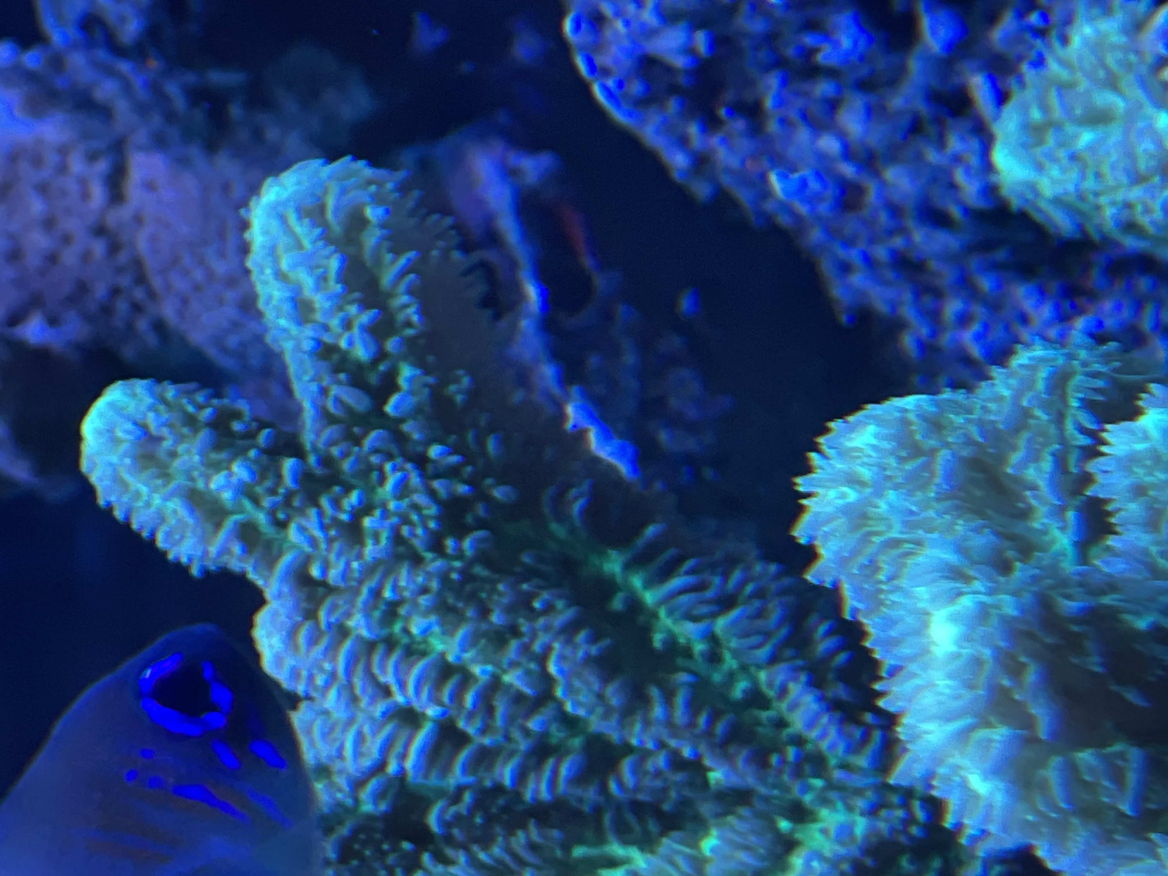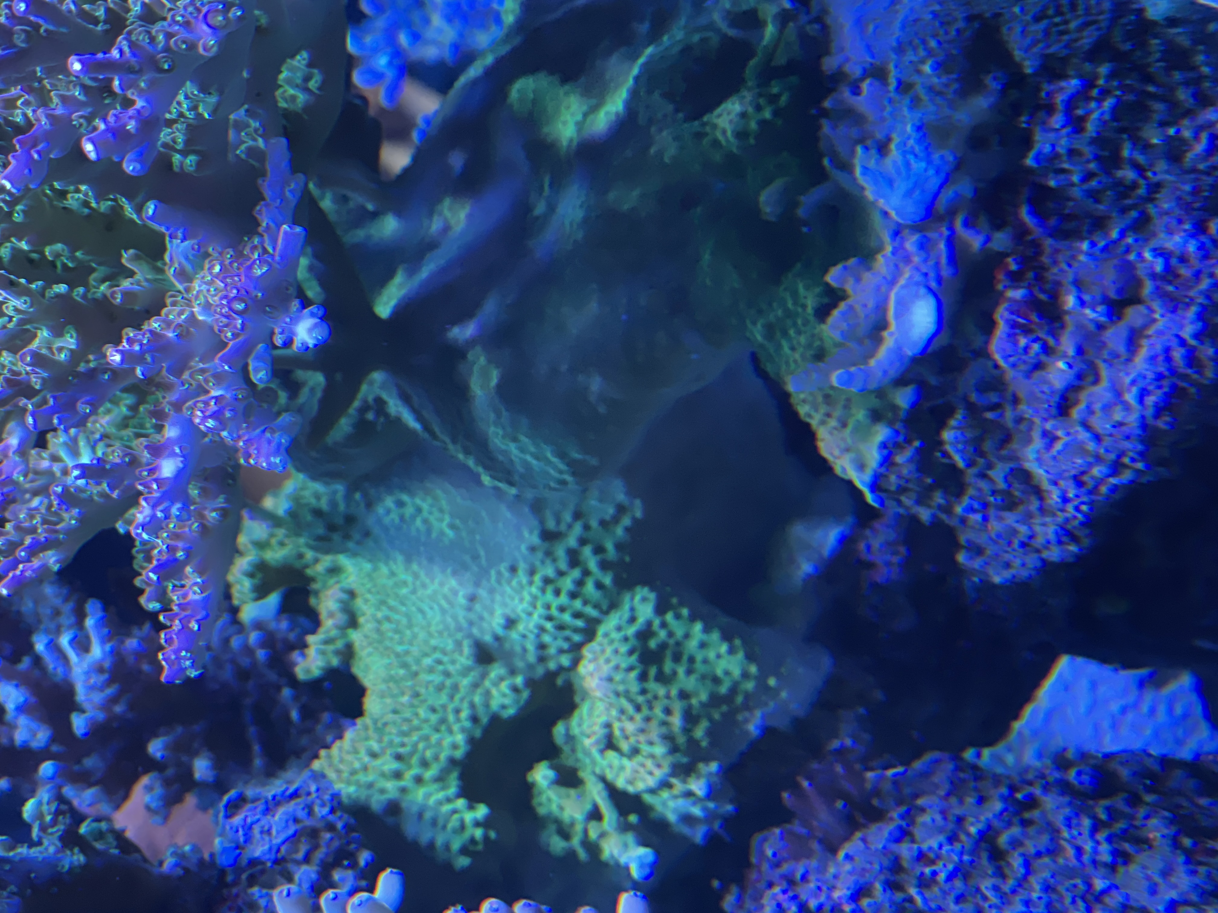 Lige nu er en acropora ved at dræbe en anden acropora koloni😔