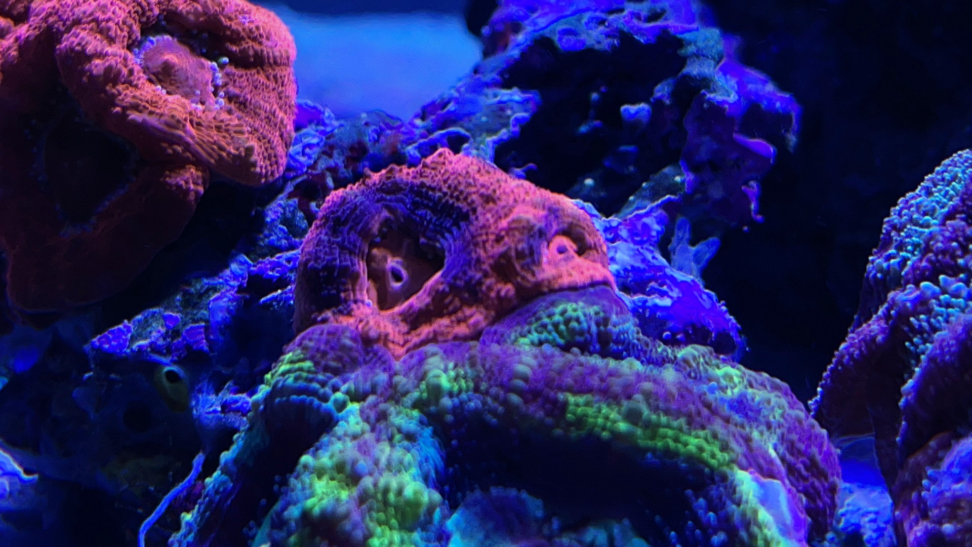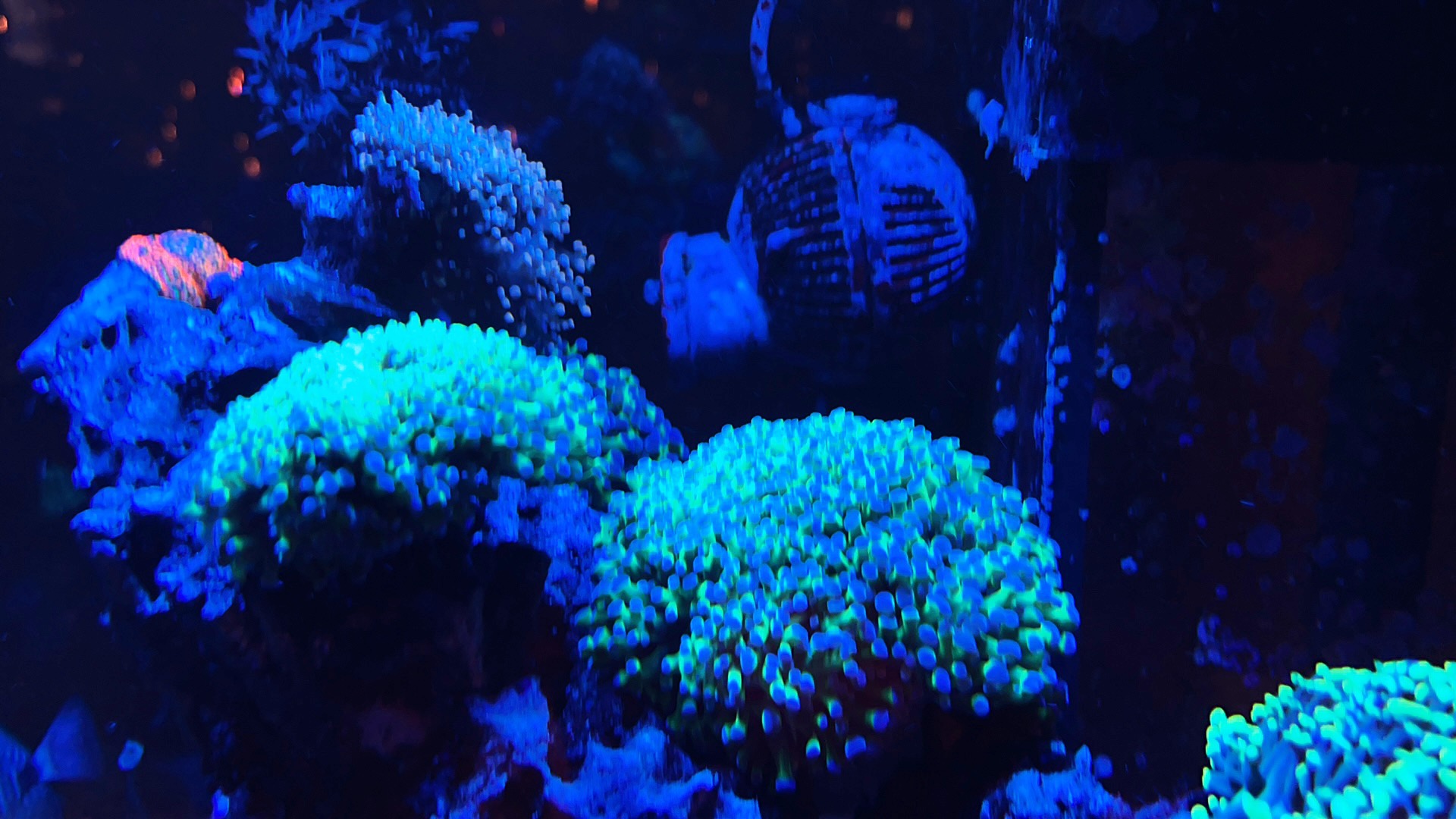 Røgen har lagt sig efter jeg fik fanget “Olivia” ind og afleveret hende ved Dan igen. Så nu begynder homophyllia at blive en smule “fleshy” igen. De reagerer desværre ikke ret meget på foder endnu (det gjorde de BIG time, før sommerferien) Håber det snart kommer igen