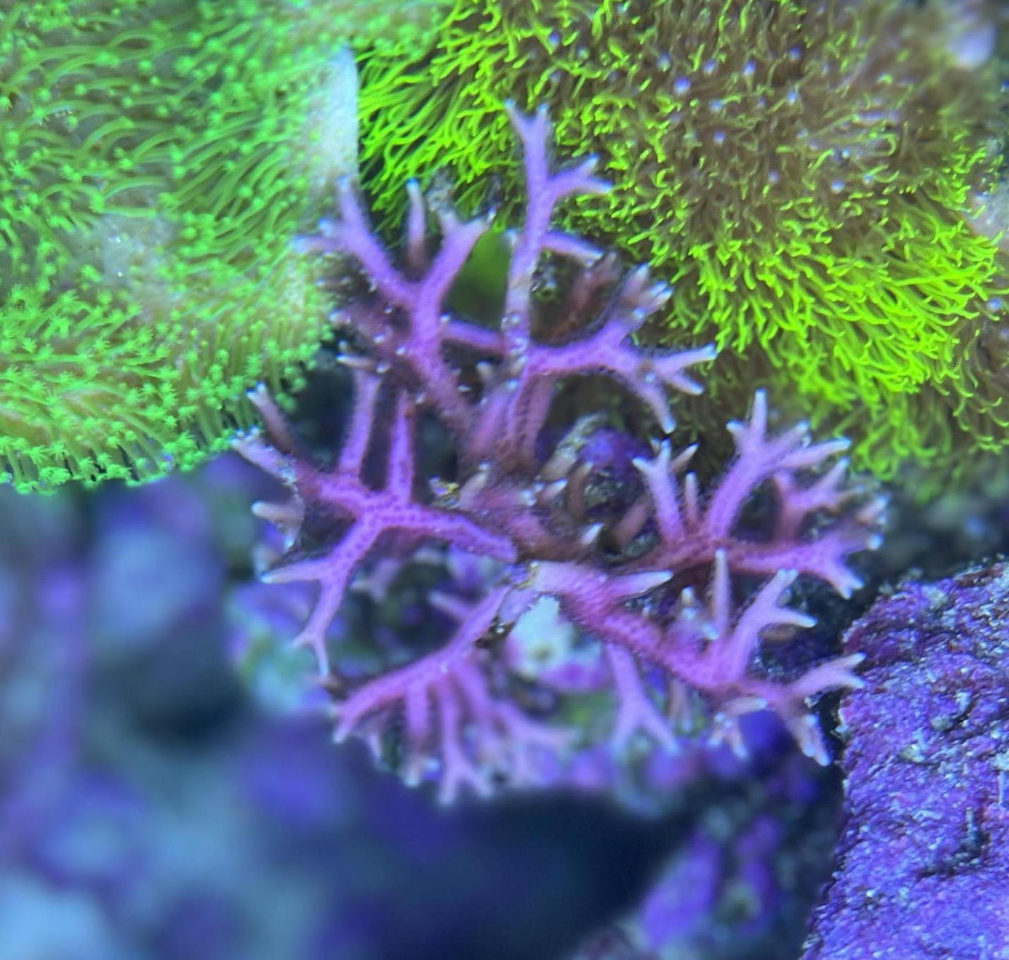 Så lang tid den ikke går fuldstændig amok i mine acroporaer så må den godt bo her og så hvidt jeg ved er de ligeglade med sps?