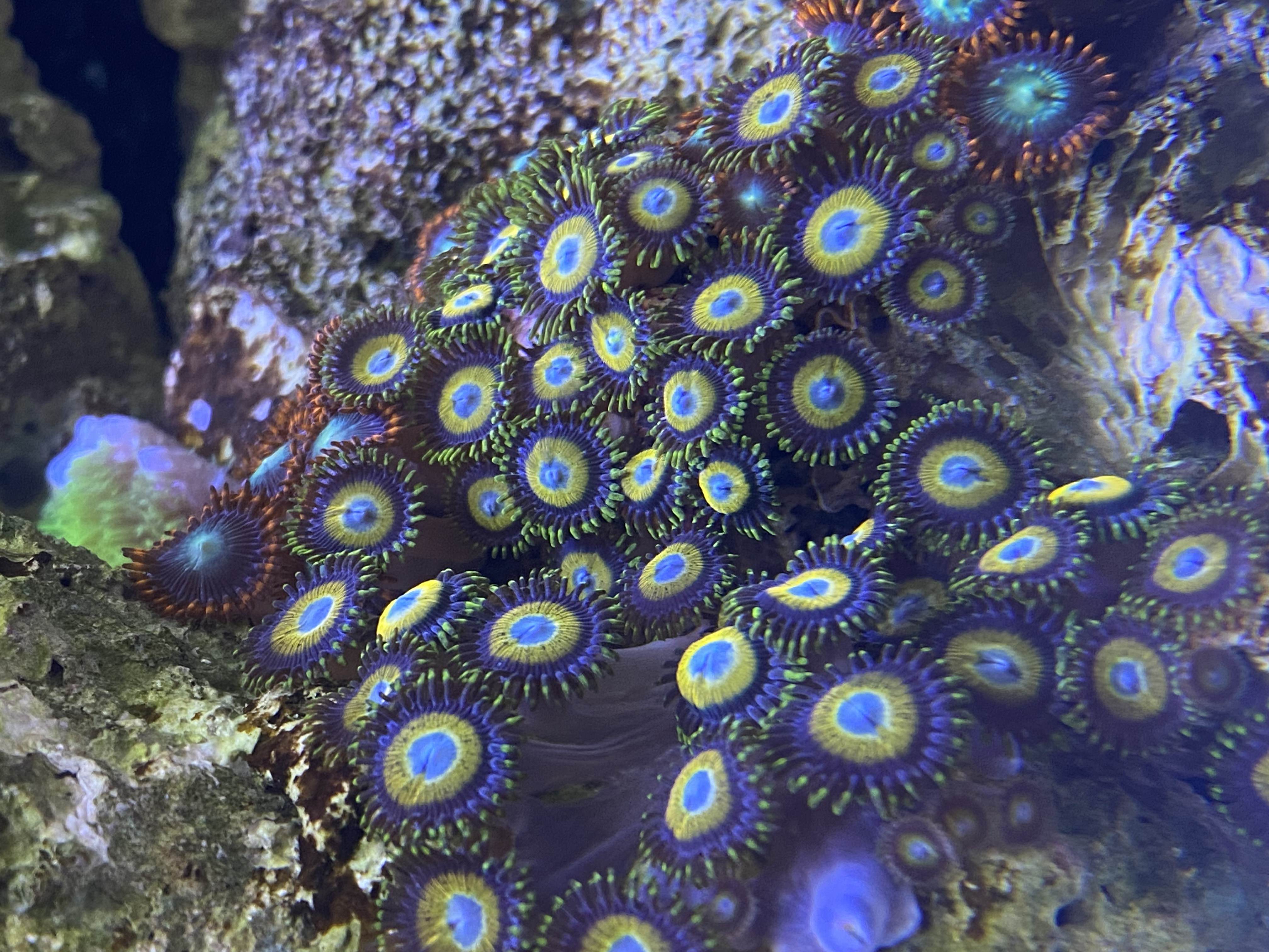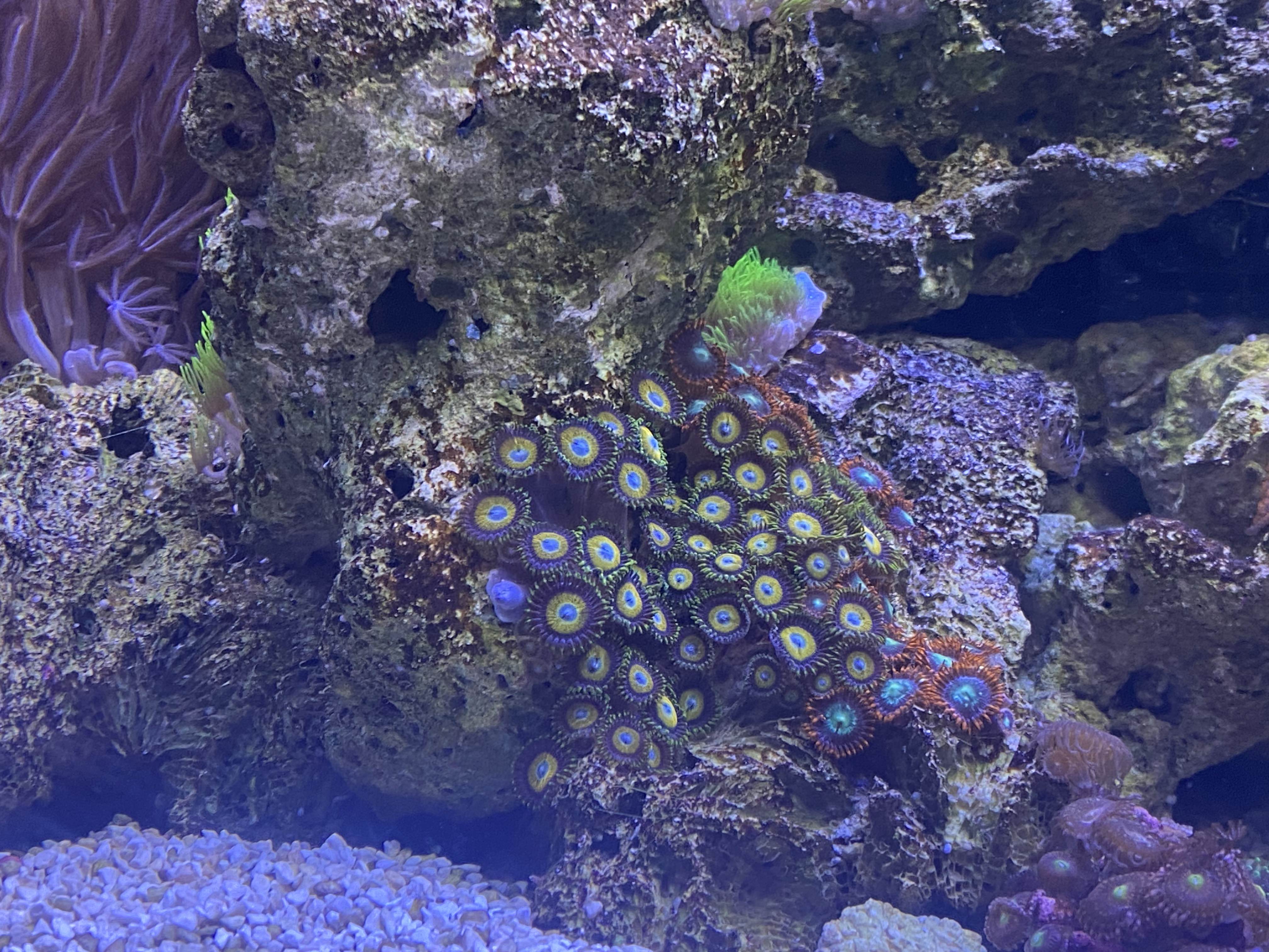 Jeg fodrer 1 gang om dagen, primært frost Artemia, men også mysis eller Unimix marine. Og ellers marine pellets. Fodre en gang i mellem også koral foder fra Vitalis, men har lidt svært ved at se effekten af det. Så ved ikke om det er noget jeg vil forsætte med.
