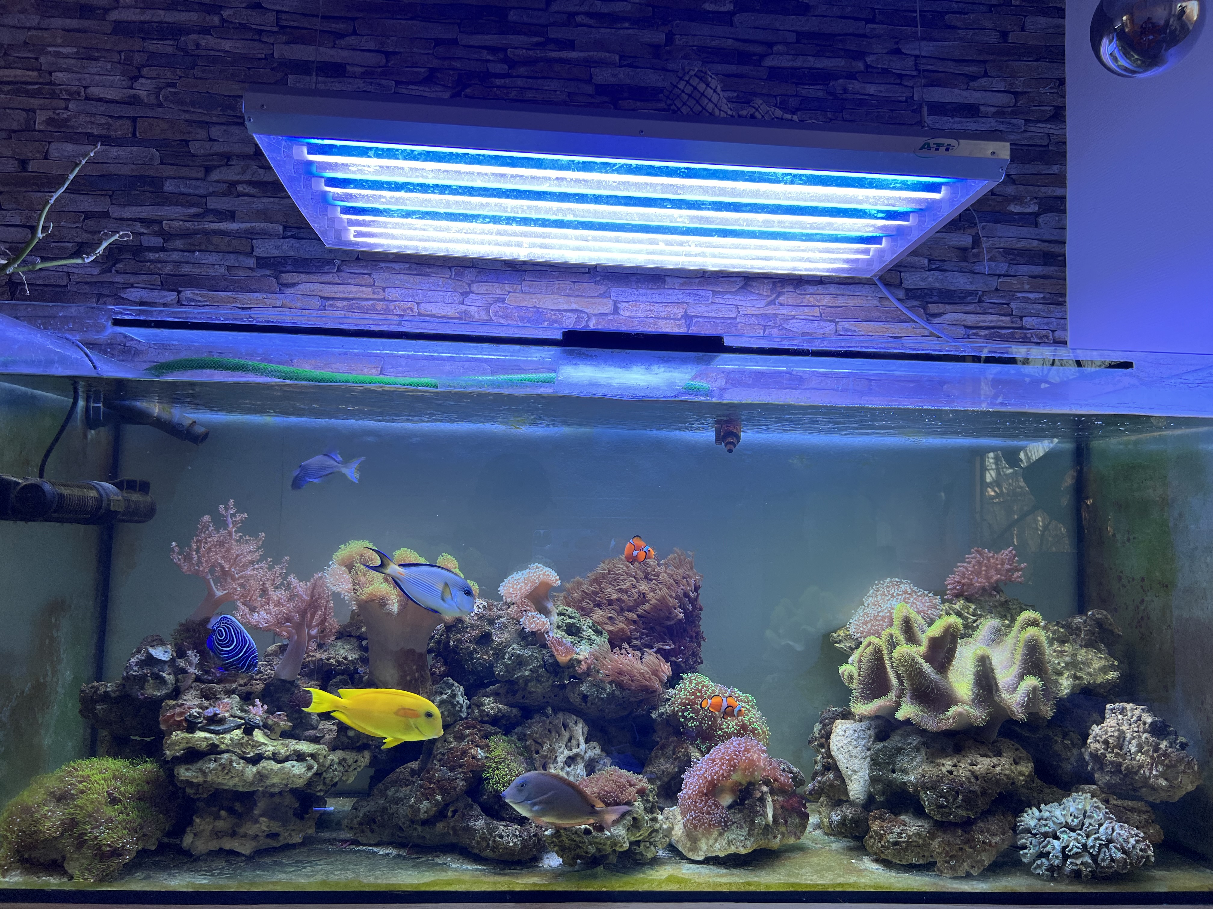 Det eneste jeg ville ændre på akvariet er en længere lampe. Det ser lidt tåbeligt ud med en 8x39 watt lampe over.