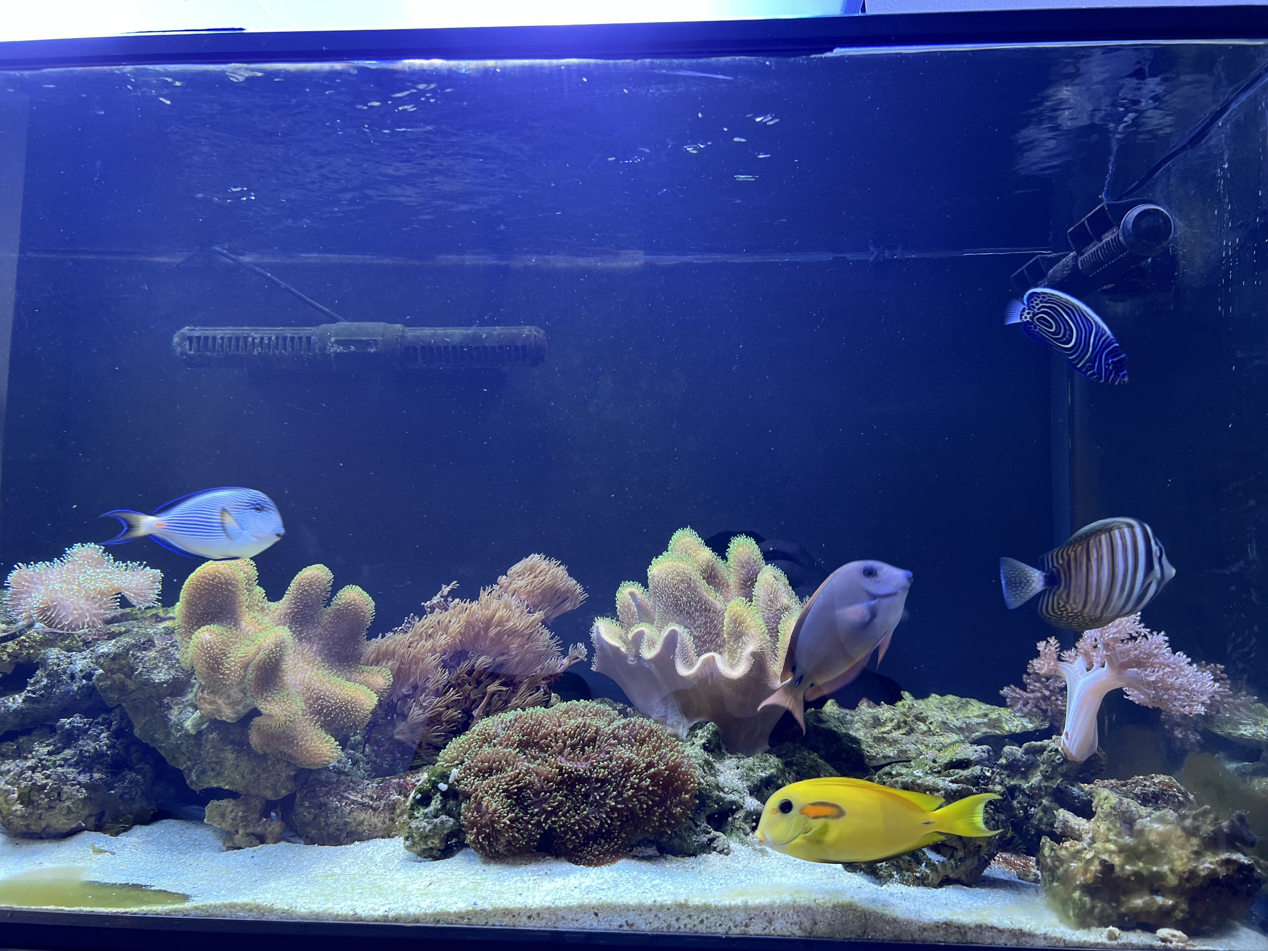 Koraller er det stadig kun bløde. Dog begynder jeg at sætte lidt montipora i snart, for at se om systemet er klar til sps.