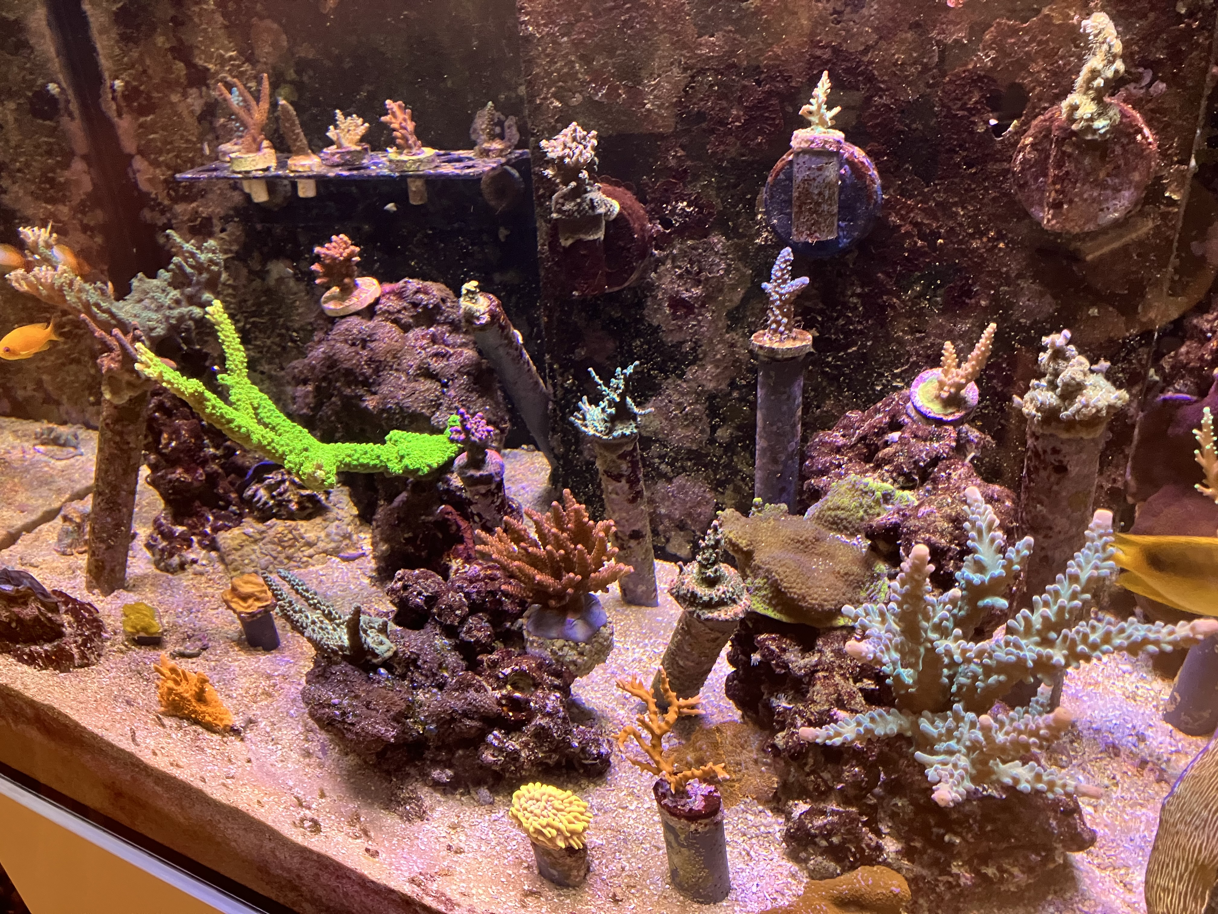 Samlingen af acroporaer er efterhånden skrumpet ind til de små dyre sticks jeg har købt hjem, så det går langsomt nu, men nu er der vokseplads til de fine acroer, så de kan udvikle sig bedst muligt.
