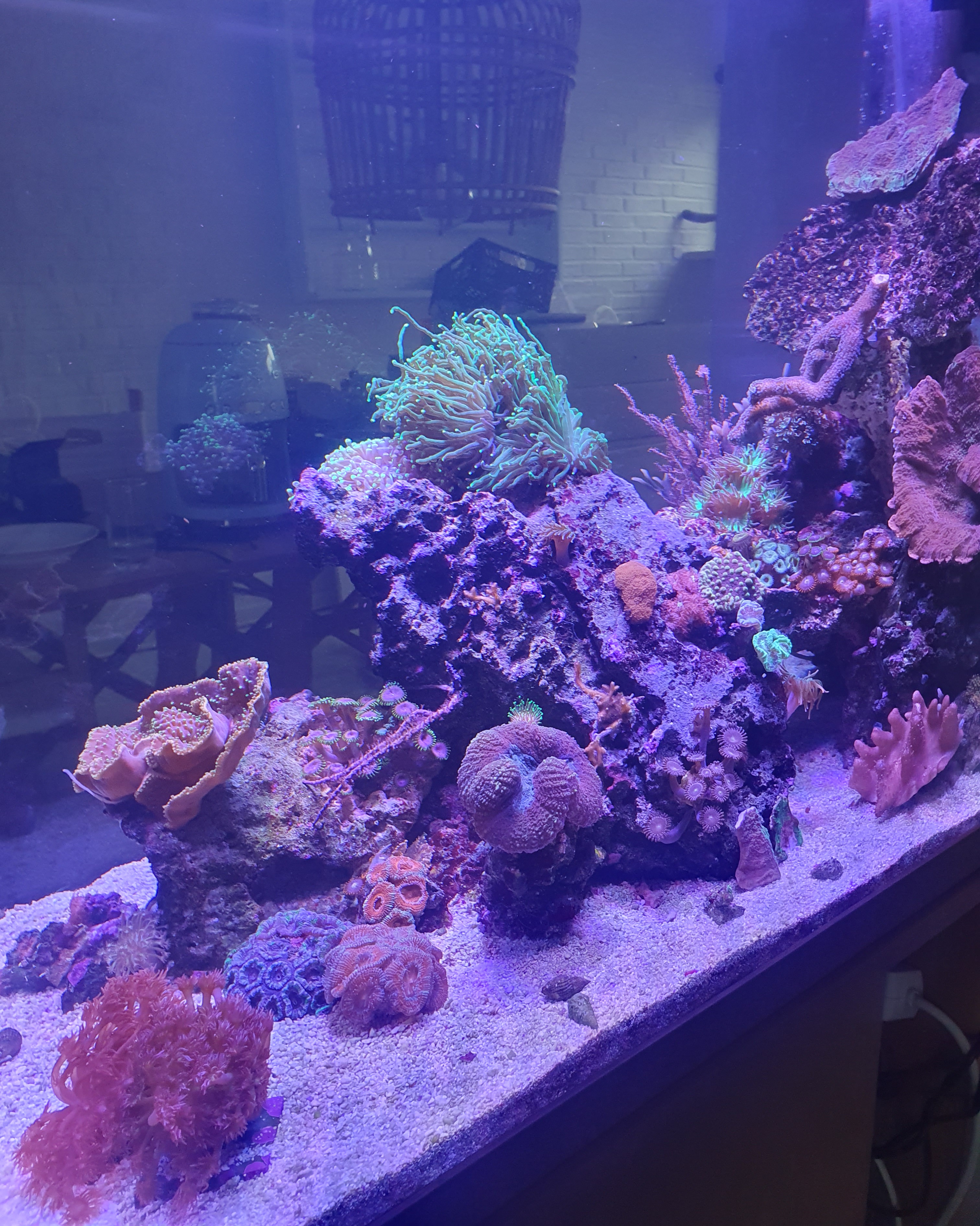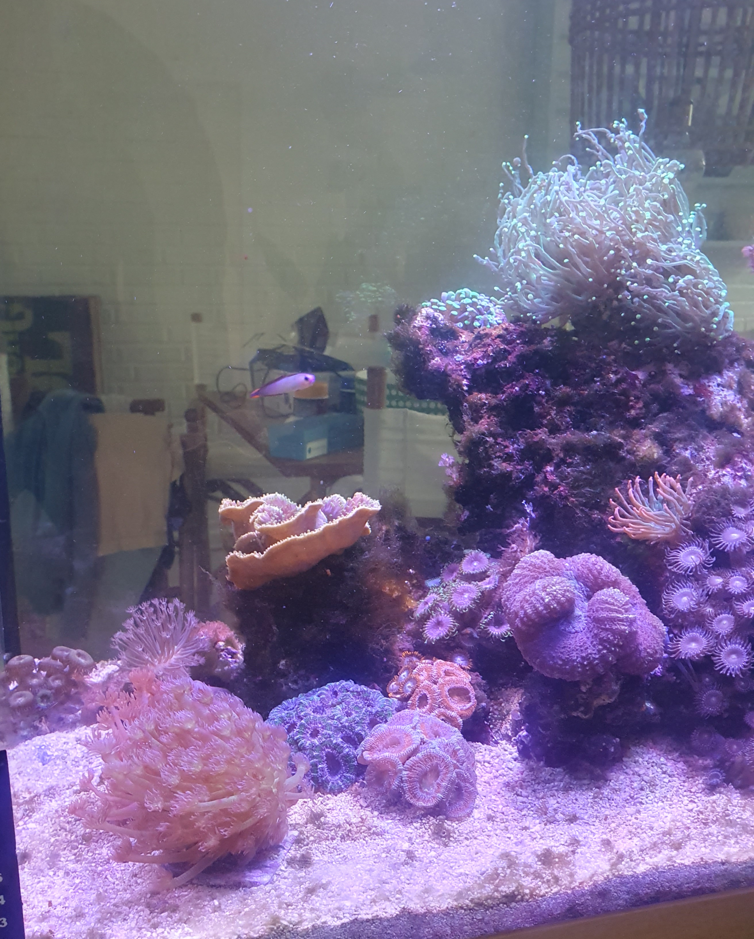 Jeg hat fået et ekstra akvarie som er identisk med dette og det har jeg skumle planer med... så dette bliver de nok med mindre anemoner gorgoniaer og blødkoraller og flere sps med tiden...