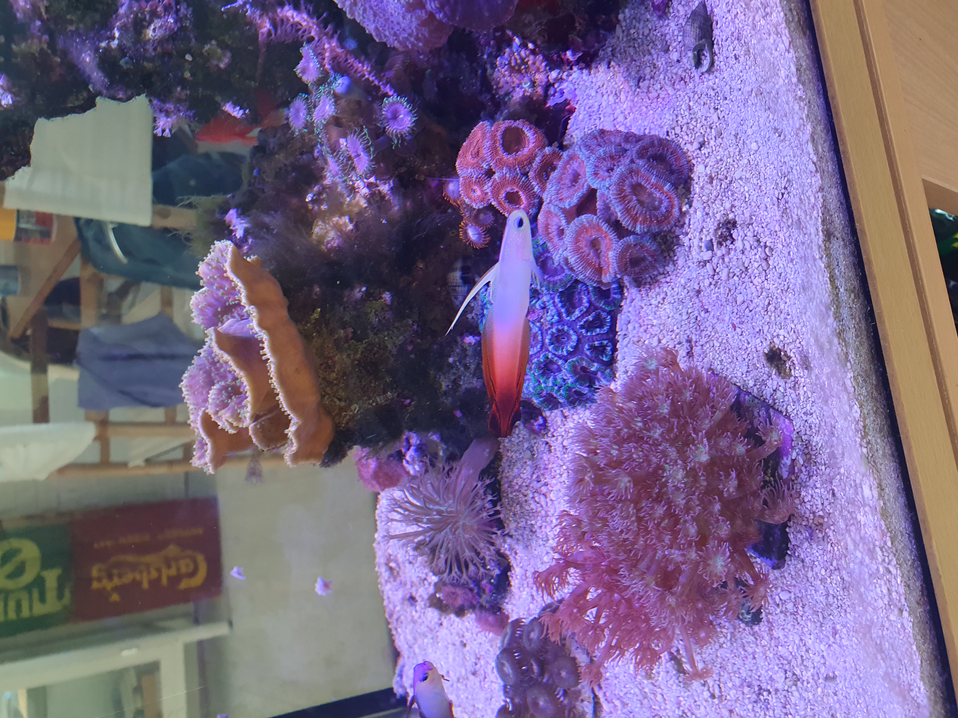 Første beboer blev en rød koralvogter for lidt tid tilbage og så idag kom der en lille mandarin, som den gamle røde koralvogter ikke er særligt gæstfri over.