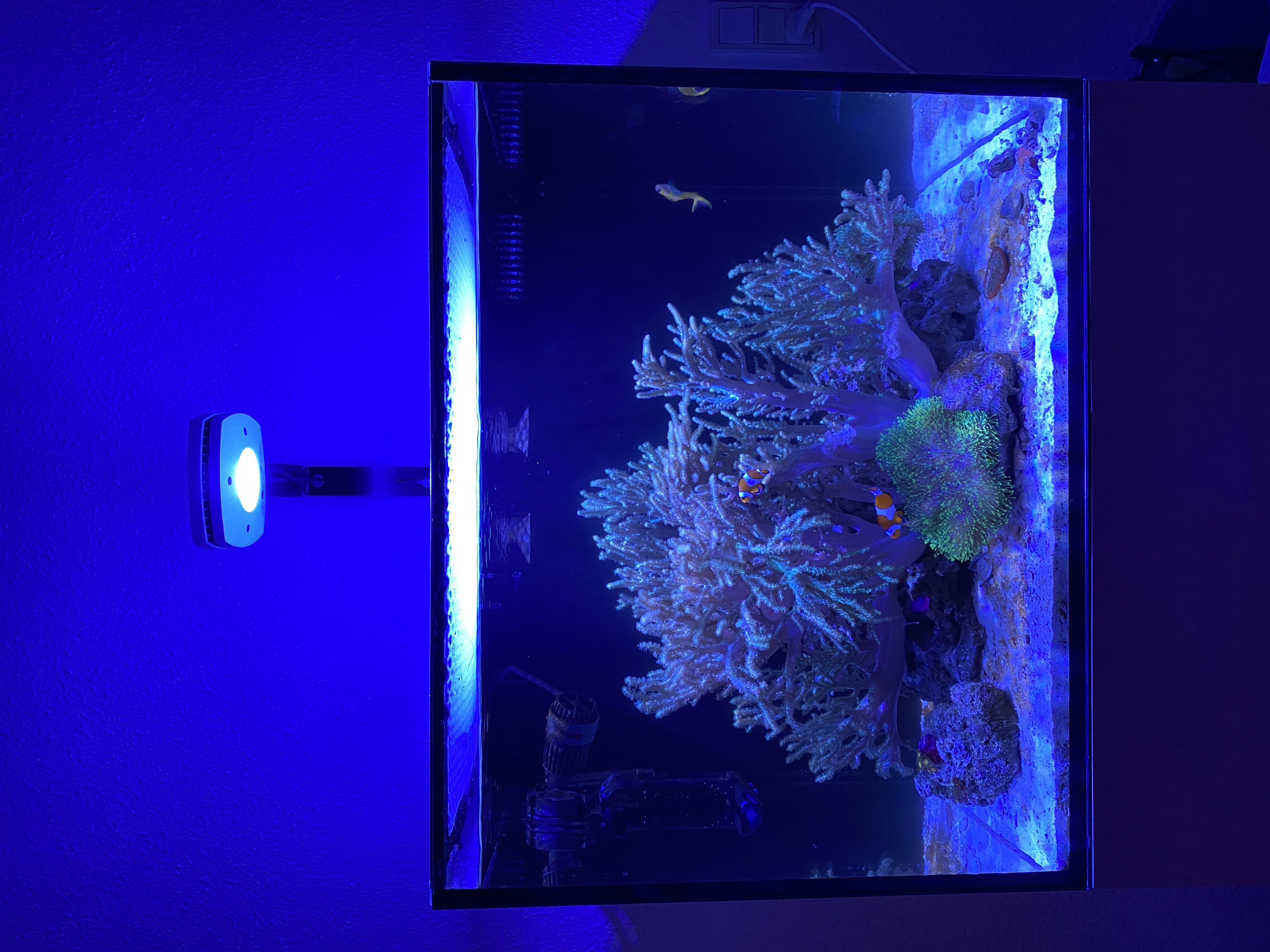 - Har skrabt det sorte af mine dækglas og sat min gamle AI Prime til, for at få mere blåligt lys og uv lys så alle farvende bliver mere tydelige. Dette er dog stadig midlertidigt, indtil jeg for investeret i et bedre nyt permanent lys.