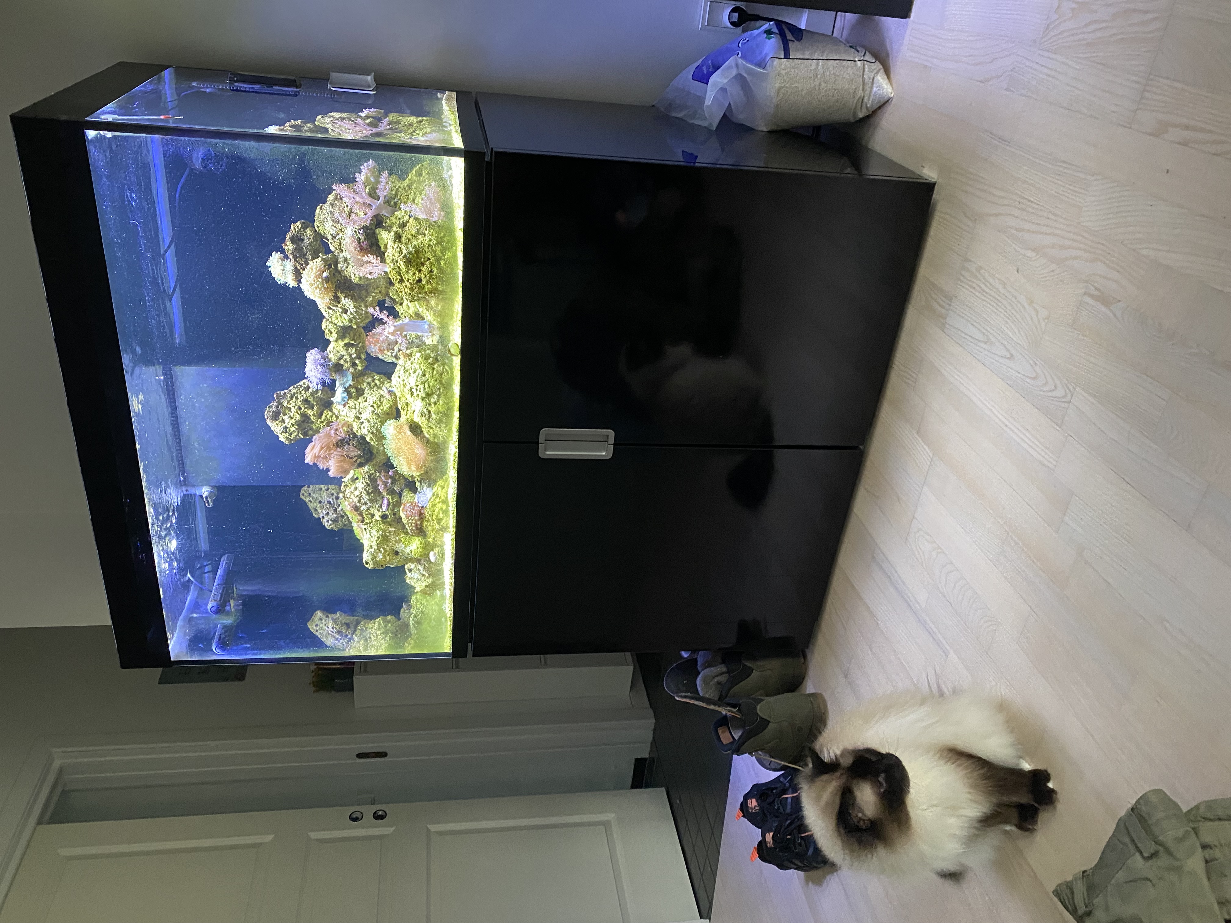 - Skal have et nyt lys, formentlig noget som hænger over, og fjerne det sorte film på mine skydelåg. Så jeg stadig har akvariet overdækket og katte sikret.