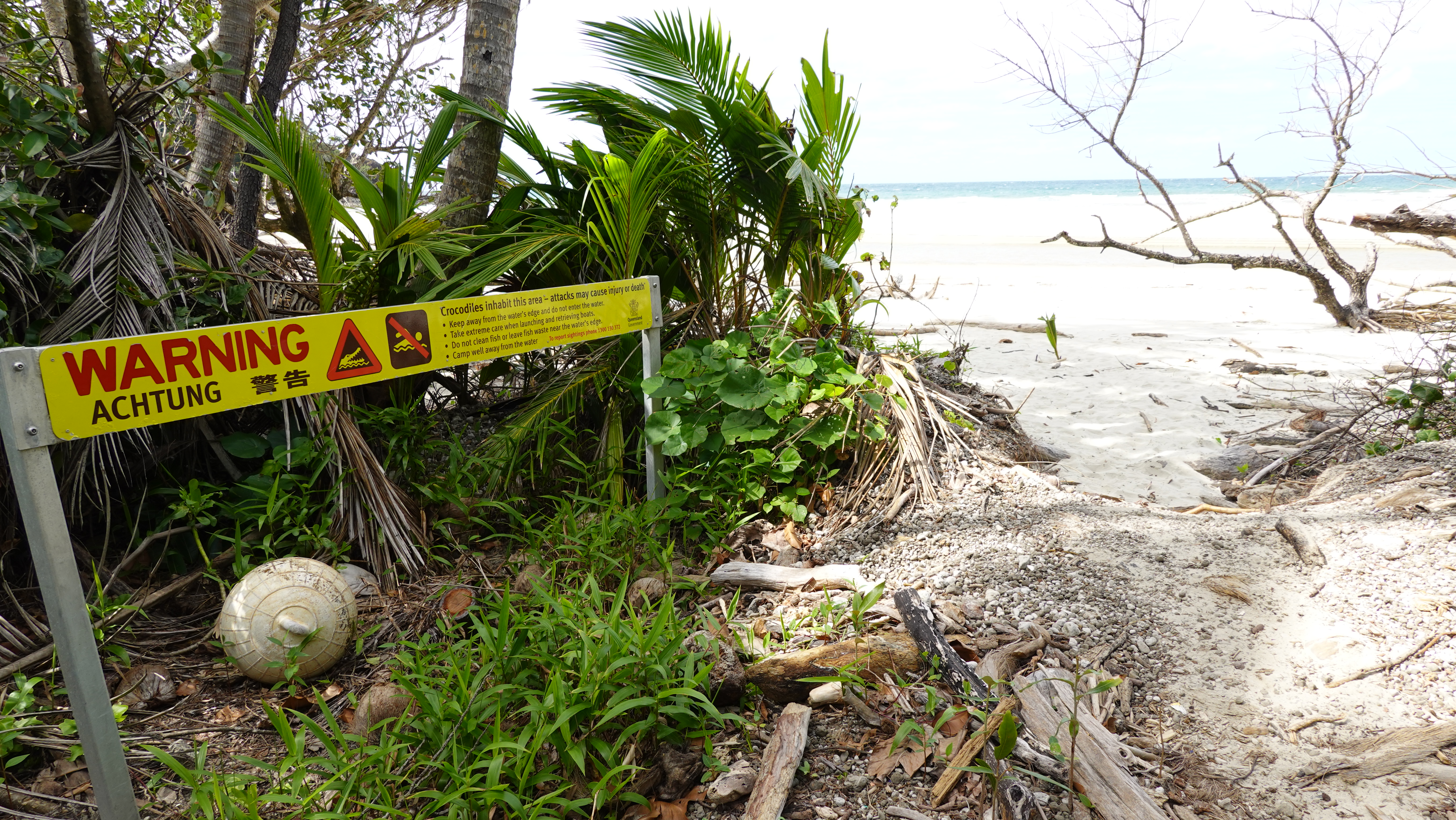 Godt nok er dette her Saltvandsforum, men på alle strande i det tropiske Australien mødes med sådanne skilte. Hvert år er der dødsfald pga. box jellyfish, krokodiller og hajer. Det tager lidt af lysten til at snorkle...