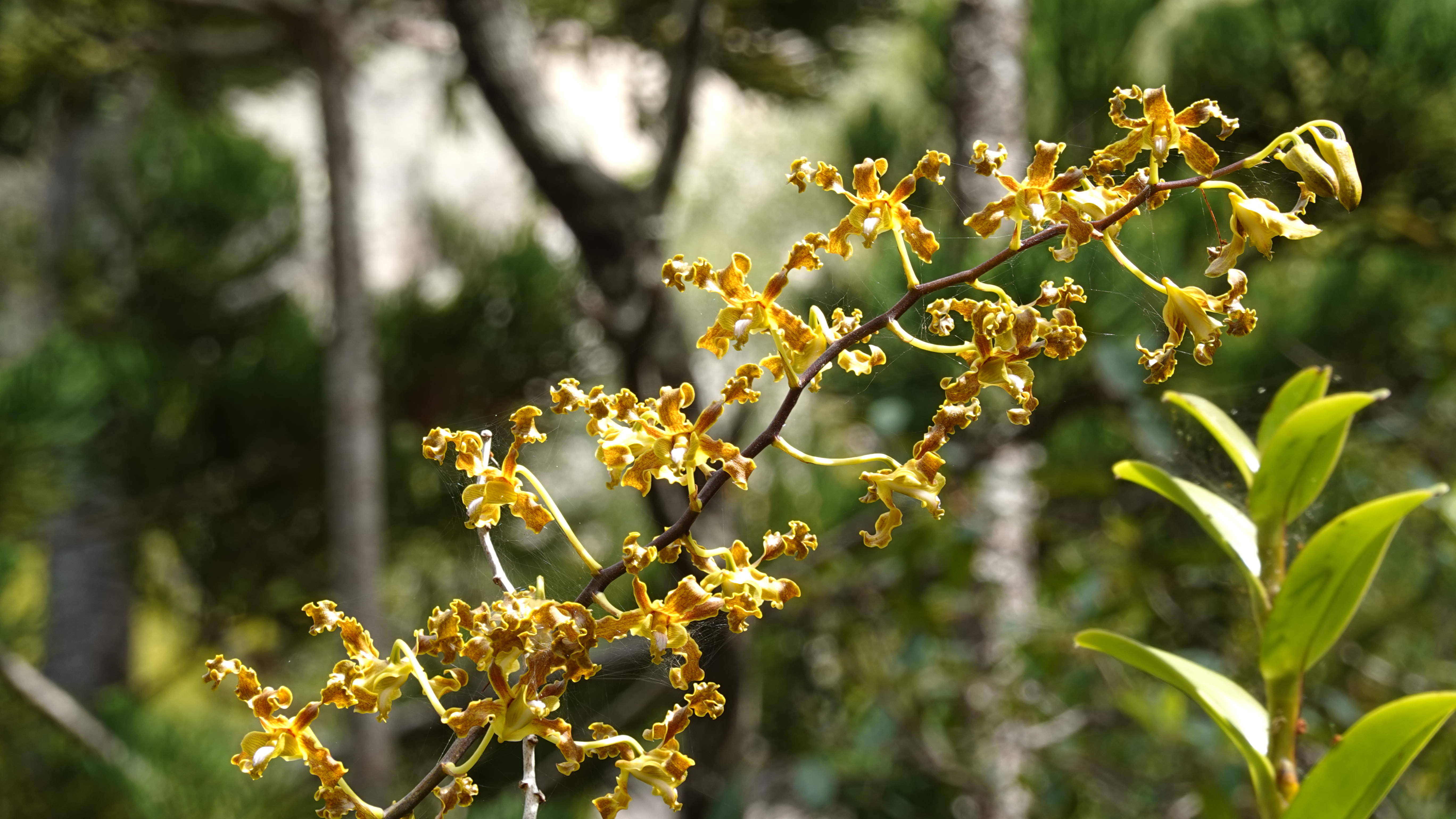 Og selvfølgelig en masse orchideer. Her er en Dendrobium discolor. Den er ikke egnet som potteplante - den kan blive flere meter høj. Vi så flere som var mandshøje, blandt denne her i blomst: