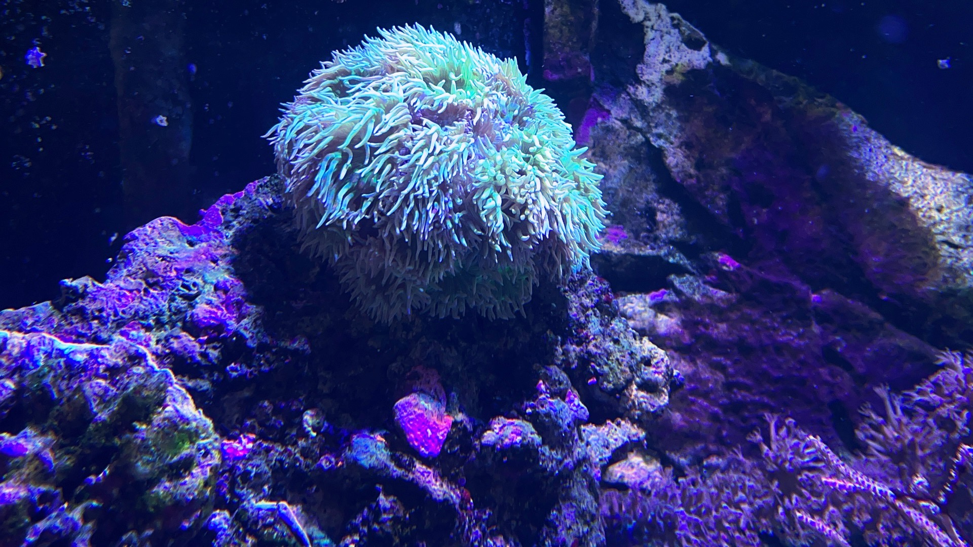 Jeg har smidt en lille tunze ph pumpe op i den ene ende da der var en “dead spot” i sandet. Den får blæst godt med lort op i vandsøjlen, som forhåbentligt ryger ud og ned i filterrulleren. Det er dét der giver det “grumsede” vand.