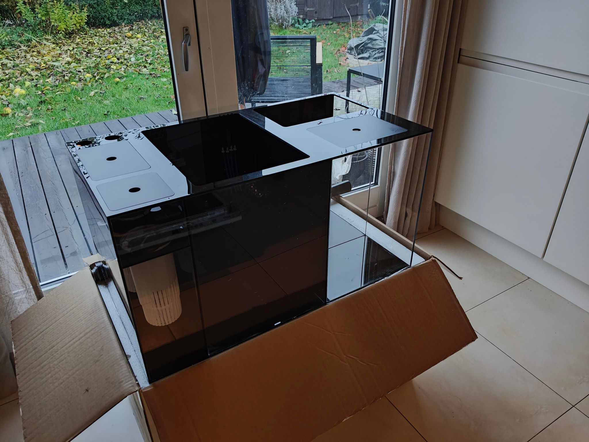 3. En sump! til det nye akvarie. Det er nice. Men jeg ville gerne se om jeg kunne holde fokus på den sorte farve som bliver temaet og udfordringen i det nye underskab. Så jeg folierer lågene..