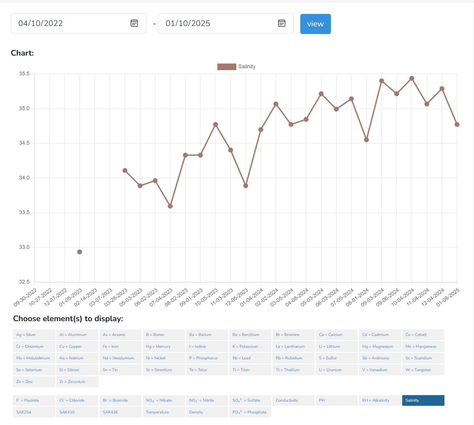 Grunden til man op/ned regner det er for at få værdien ved 35 promille, den værdi du læser på venstre side er den aktuelle værdi i vandprøven, den du ser i PDF'en til højre er værdien hvis saltholdighed var 35 promille. Håber du forstår. Et eksempel kunne være calcium på 410 mg/li det målte vand ved 34,5 promille ville svare til 420 mg/l ved 35 promille. Det er kun tænkt for at gøre det lettere at forholde sig til værdierne hvis man har en anden salinitet end 35 promille.