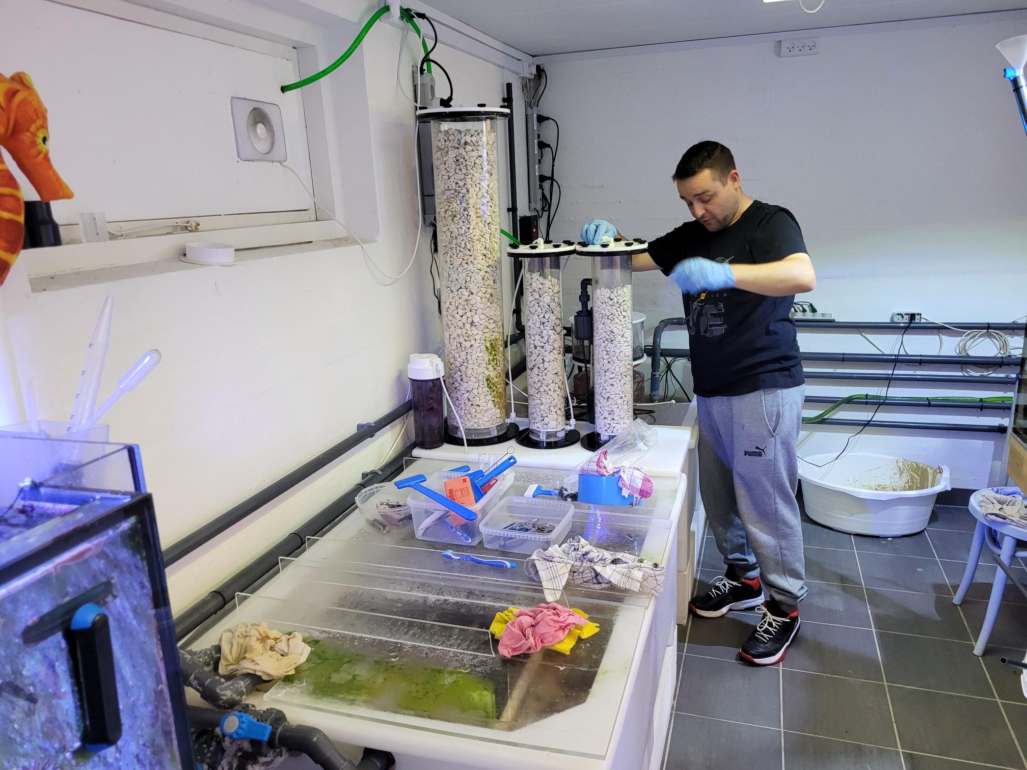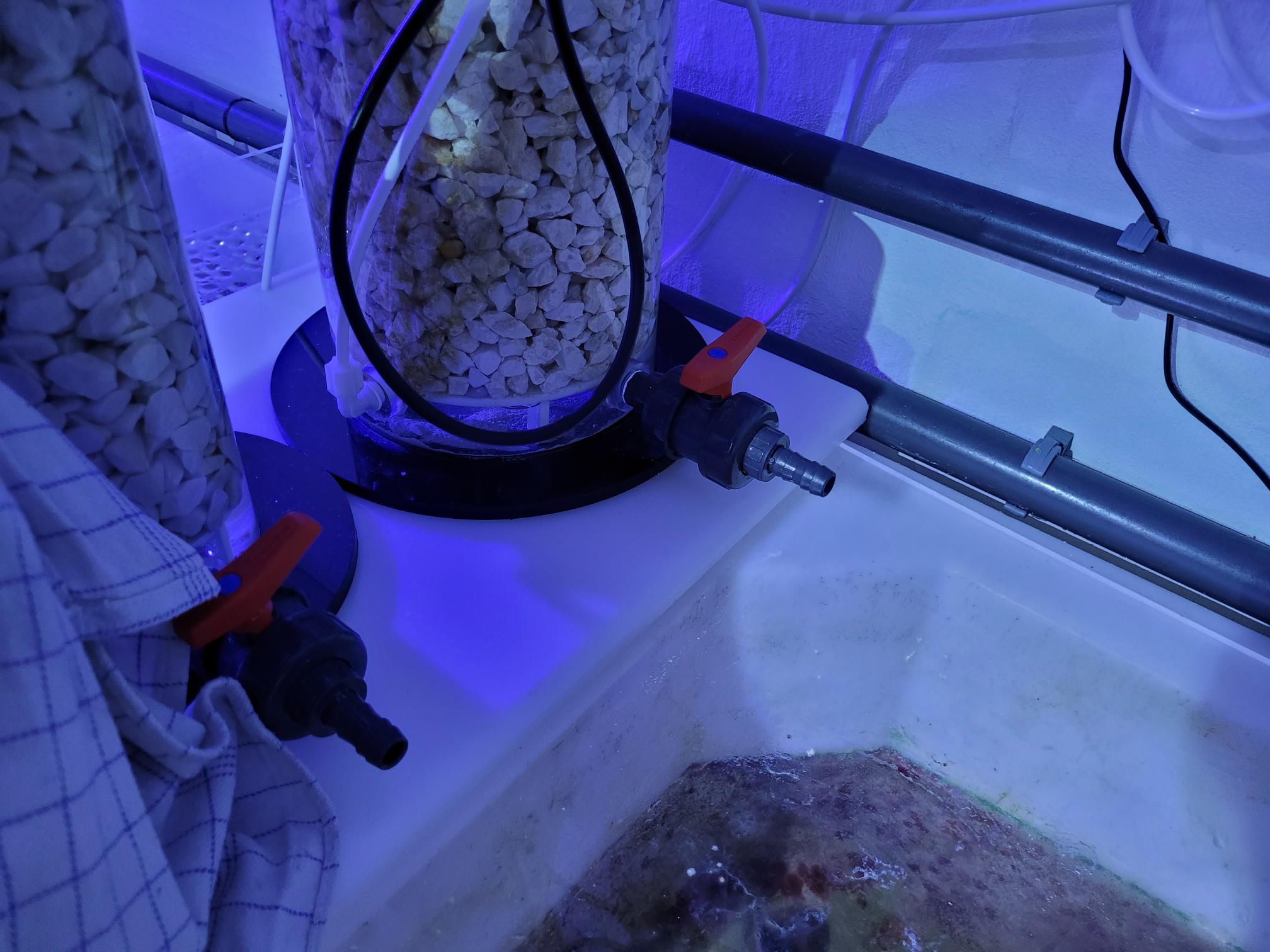 Vi blev enige om, at jeg stoppede alt på reaktoren. Så løb der i det mindste ikke vand ud mere. Så sendte jeg en besked til en af mine gode venner, der har en Dastaco han ikke bruger, da han lige har lukket hans akvarie ned. Jeg har lige fået over halvdelen af hans koraller og to fisk ud, så jeg vidste den ikke var i brug.
