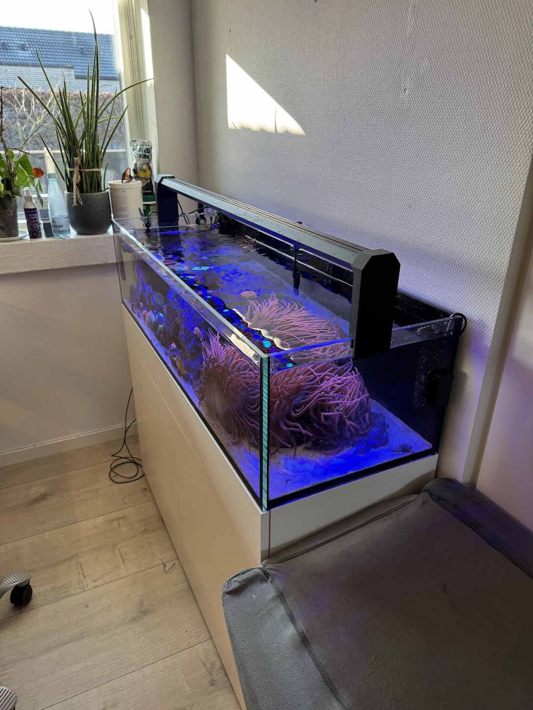 - Akvarie i 10mm optic white glass og sort baggrund 120cm(b) x 30cm(h) x 40cm(d)