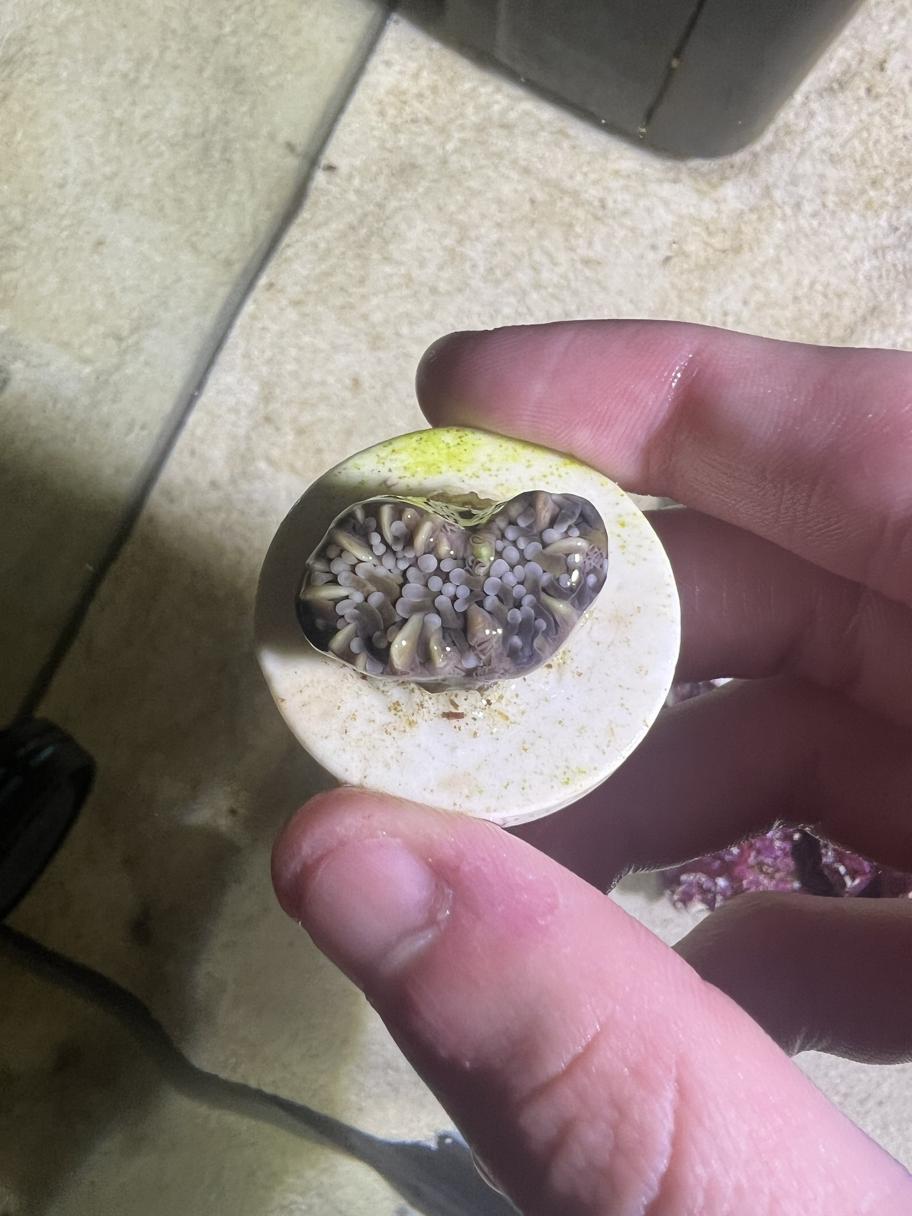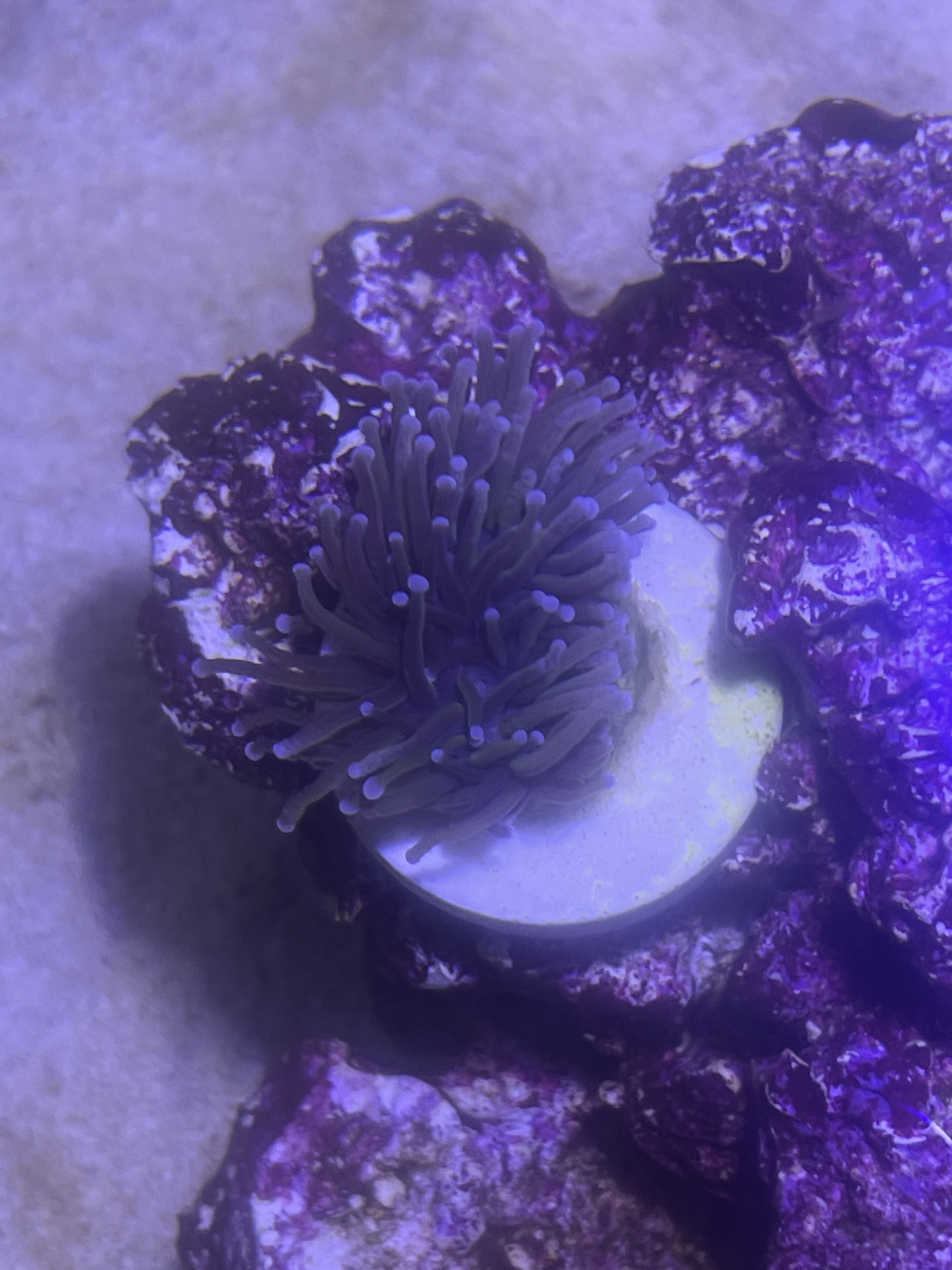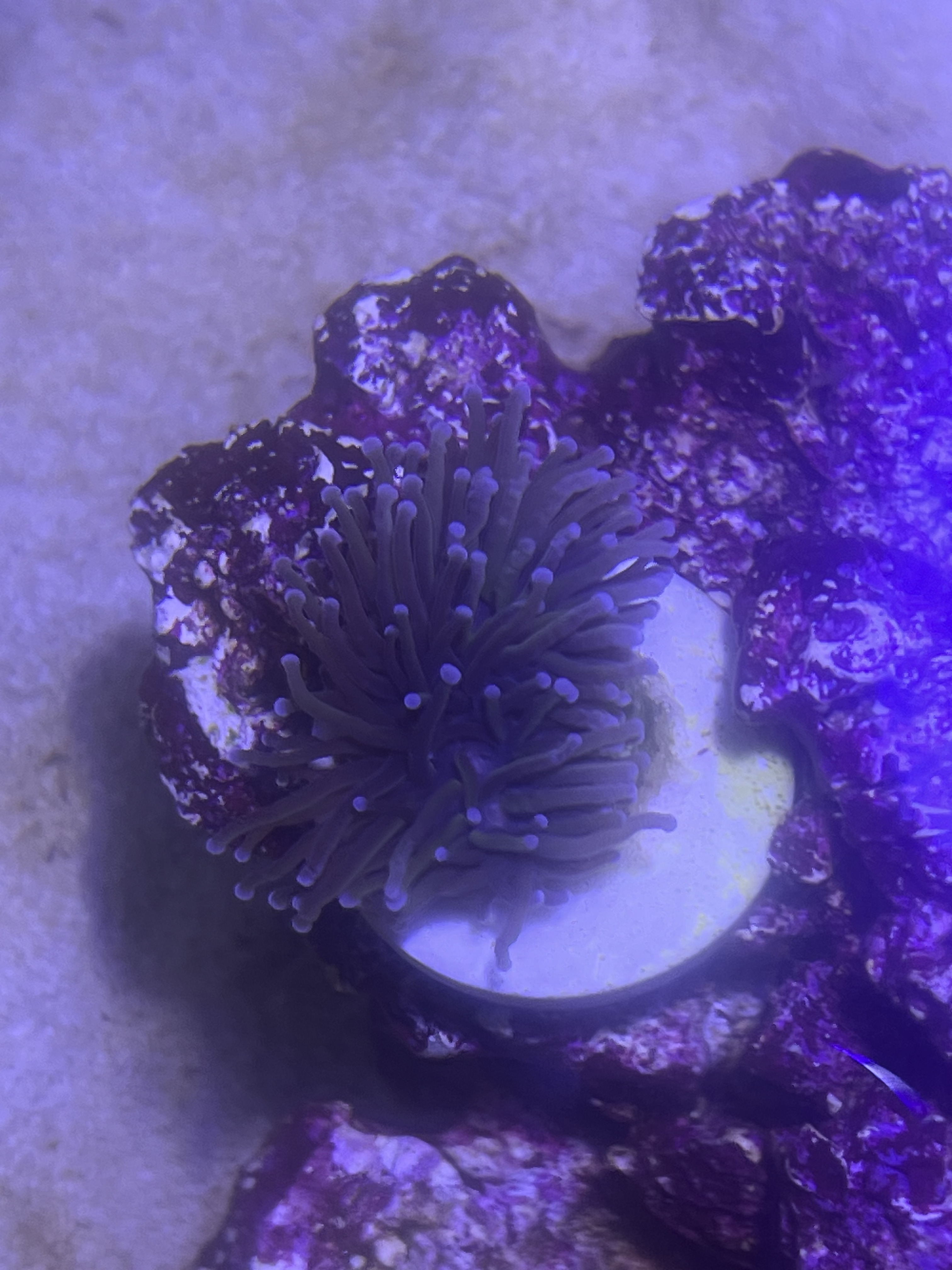 Jeg har købt mig en euphyllia glabrescens 24k, den er meget normal om dagen, men om natten er det som om den næsten viser sit skelet, er dette normalt? Skal jo lige siges at lyset har været slukket på de sidste billeder, men tændte for at tage billederne.