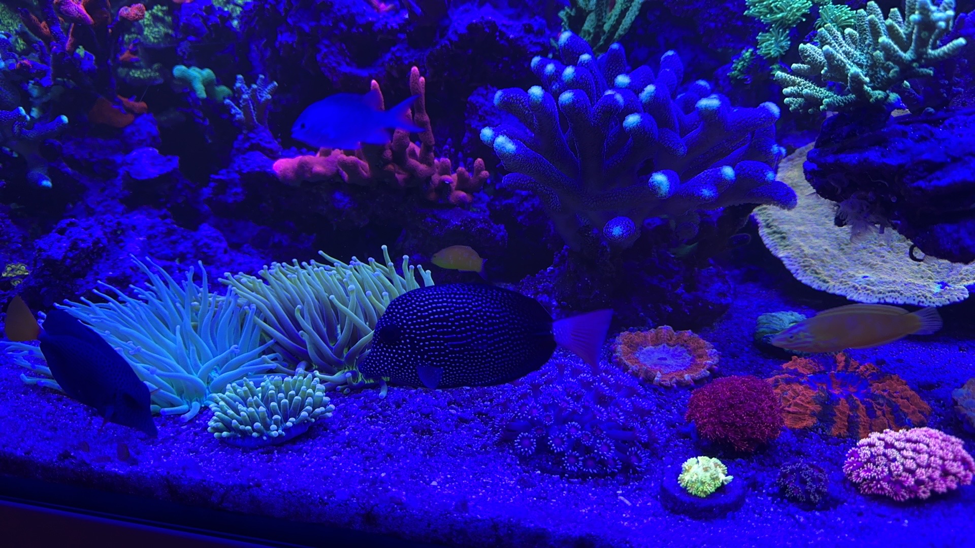 Mit akvarie går nogenlunde. Gamle sps koraler der var så godt som døde er blomstret lidt op igen .