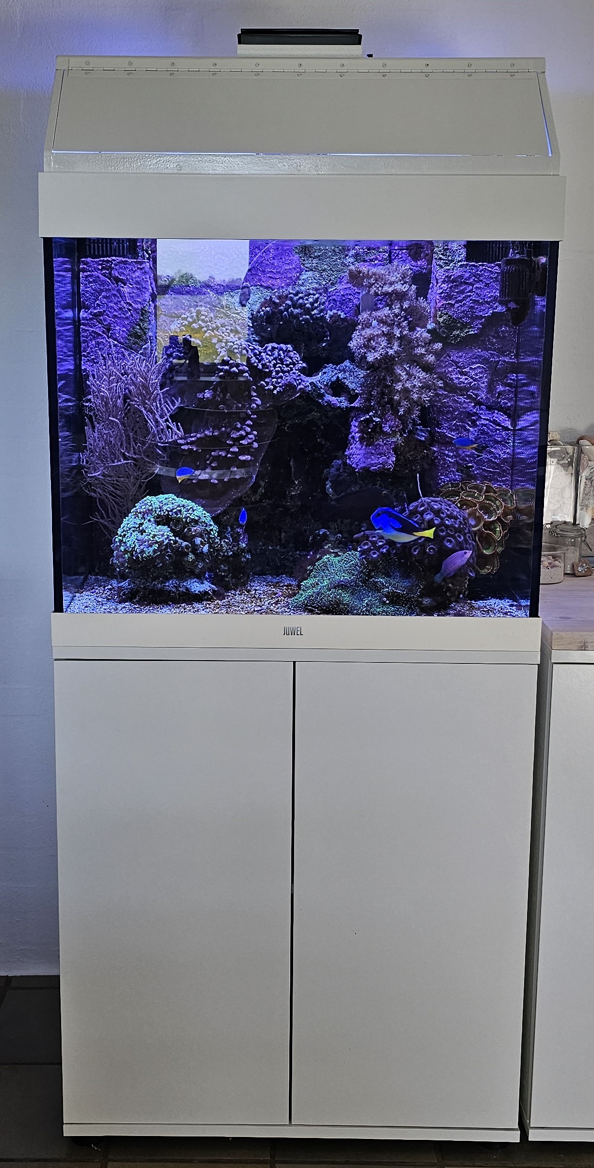 Alt i alt et flot og velkørende saltvandsakvarie som er lige til at flytte og køre videre for den nye ejer (har selv flyttet det tidligere).