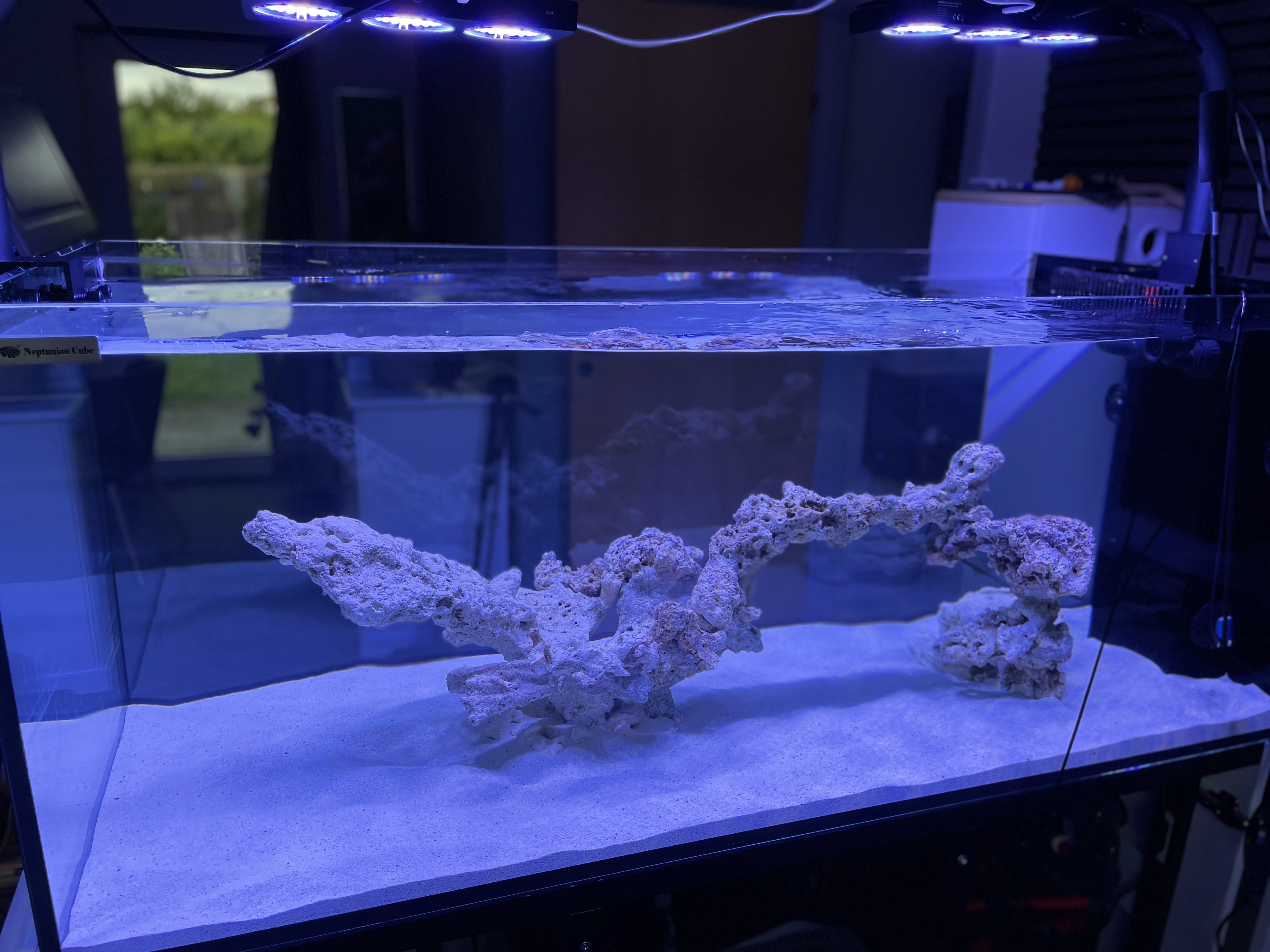 Det nye setup bestemmer hvornår skiftet sker da, vandet fra det nye setup løber ned i sumpen på det gamle og en pumpe fylder så op det manglende vand fra hovedakvarie. Tusind tak til Carsten i Decocean, for denne finte❤️