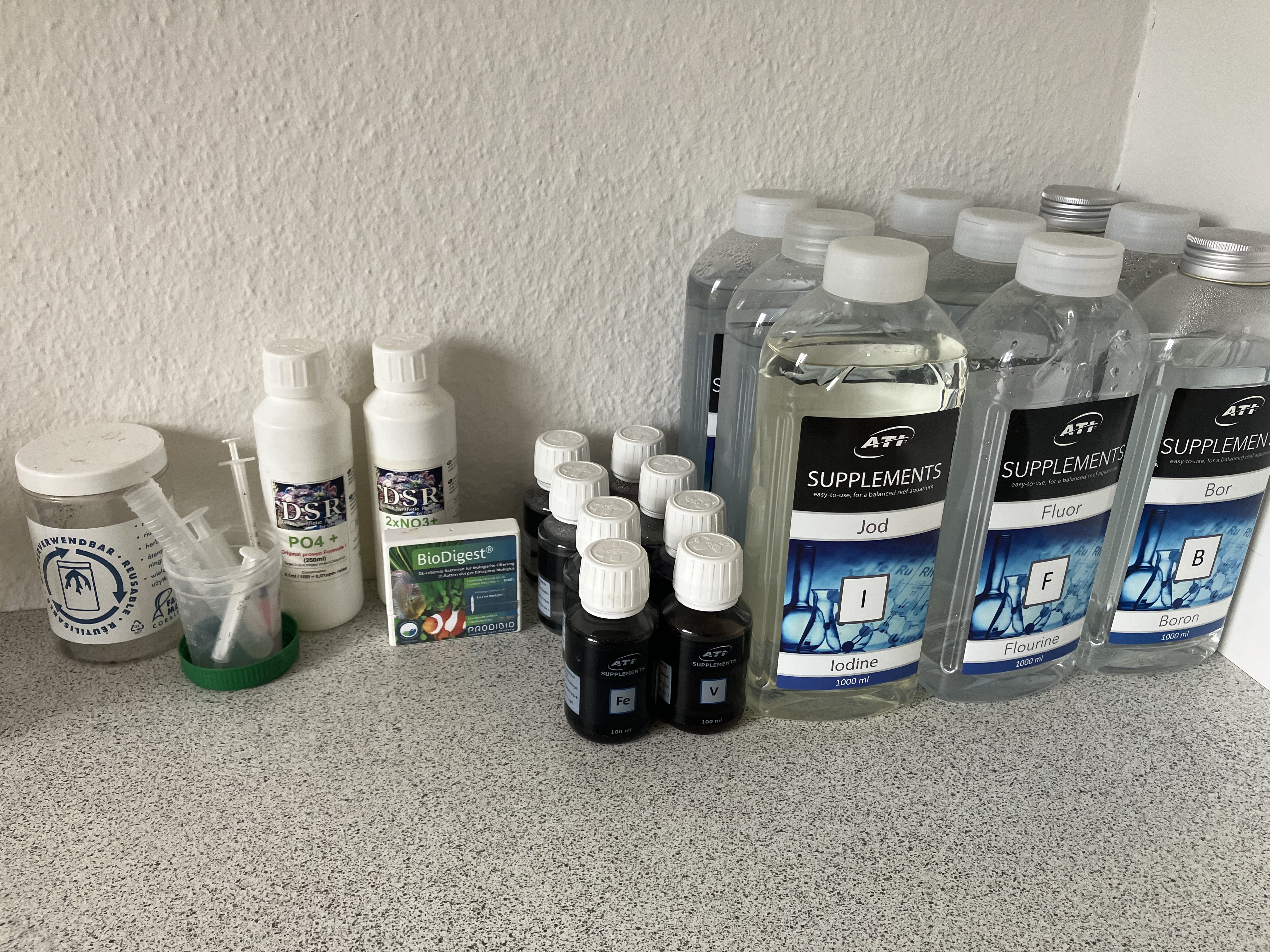 Jeg bruger ATI Essentials+, der er 5x koncentreret og indholder sporestofferne, således der kun skal justeres ganske lidt ifm de månedlige ICP tests.